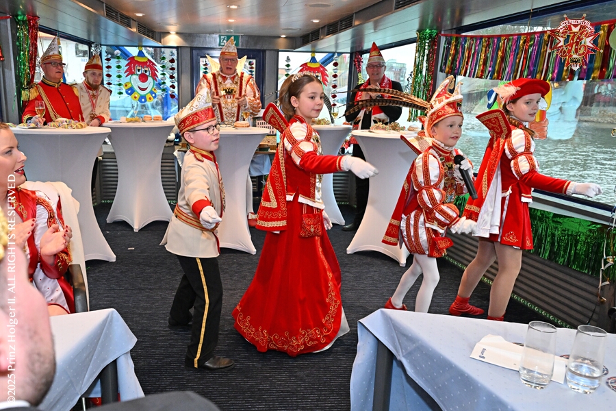 24 Prinzenfahrt auf dem duisport-Schiff - Die Prinzenfahrt auf dem duisport-Schiff, der Karl Jarres ist ein Höhepunkt in jeder Session! Pünktlich um 11:11 Uhr hieß es „Leinen los". Zusammen mit duisport-Vorstand Markus Bangen und Giordana Sperling-Doppstadt sowie Vertretern des HDK. Auch Vertreter aus Duisburgs Karnevalsgesellschaften waren an Bord und es ging volle Kraft voraus über den Rhein.