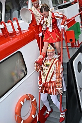 34 Prinzenfahrt auf dem duisport-Schiff - Die Prinzenfahrt auf dem duisport-Schiff, der Karl Jarres ist ein Höhepunkt in jeder Session! Pünktlich um 11:11 Uhr hieß es „Leinen los". Zusammen mit duisport-Vorstand Markus Bangen und Giordana Sperling-Doppstadt sowie Vertretern des HDK. Auch Vertreter aus Duisburgs Karnevalsgesellschaften waren an Bord und es ging volle Kraft voraus über den Rhein.