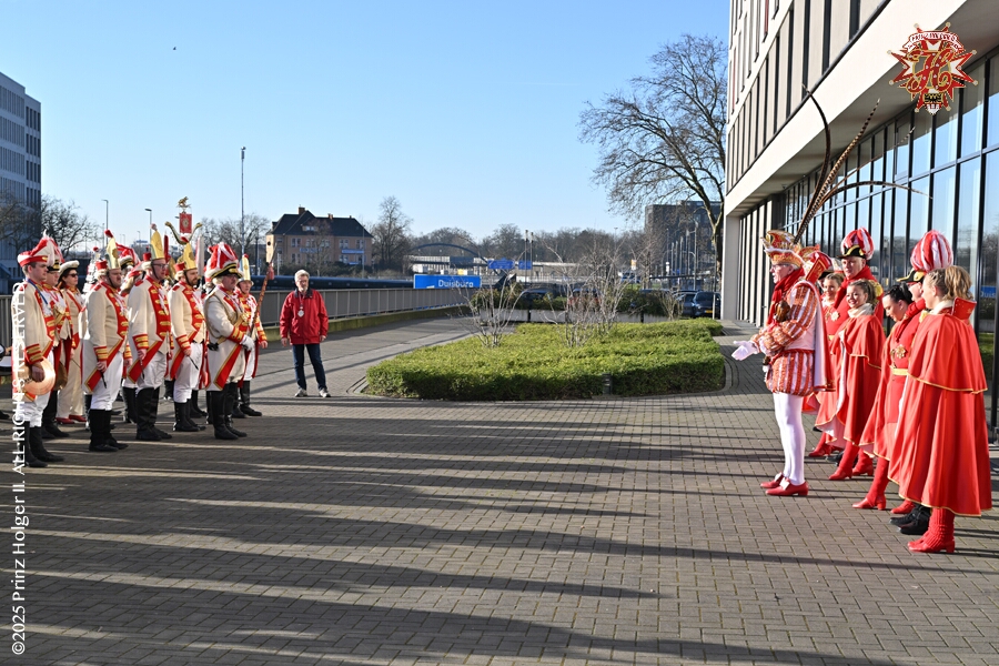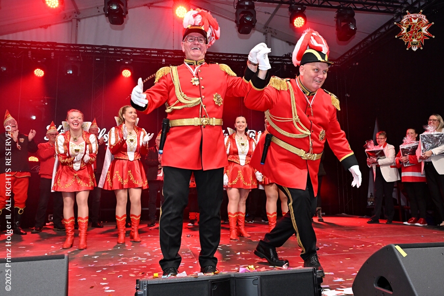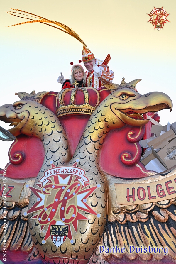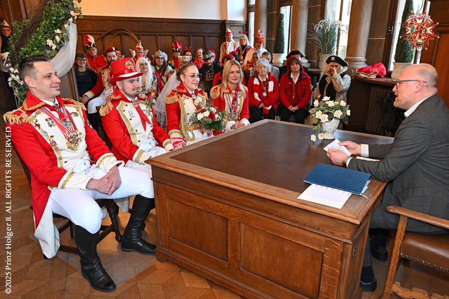 Ein ungewöhnlicher Start in den Rosenmontag. Im Standesamt geben sich vor OB Sören Link Lara und Chris Loosen das Ja-Wort. Dann Prinzenwecken vor dem IntercityHotel. Im Rathaus geht es weiter mit dem Prinzenfrühstück im Ratssaal. Prinz Holger II. und Hofmarschälle erhalten den „Stern“ und gehören jetzt zum „Club der alten Herrn“. Bei Kaiserwetter dann der Umzug durch die Stadt. Bei der After-Zug-Party ist dann Schluss, die Crew werden nach einer erfolgreichen Session verabschiedet.