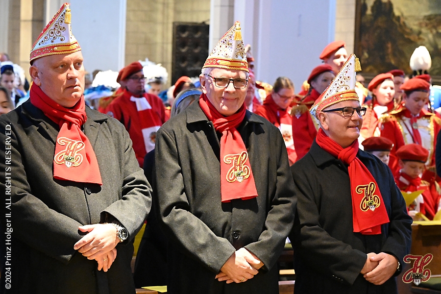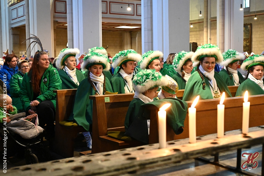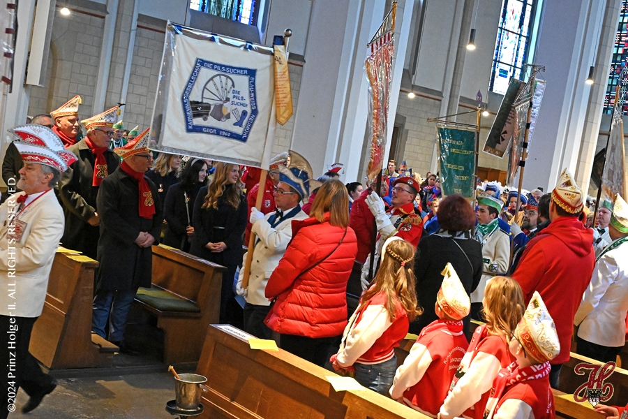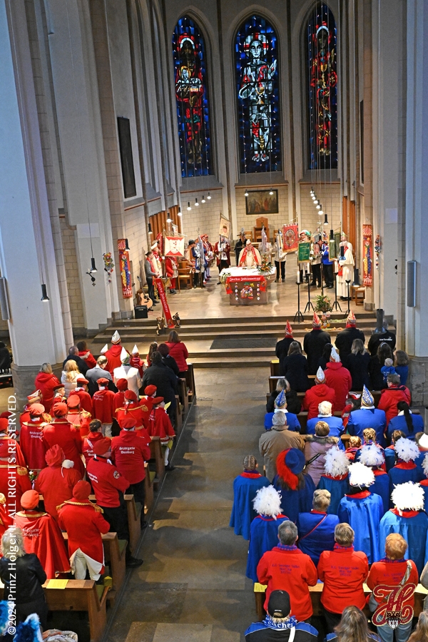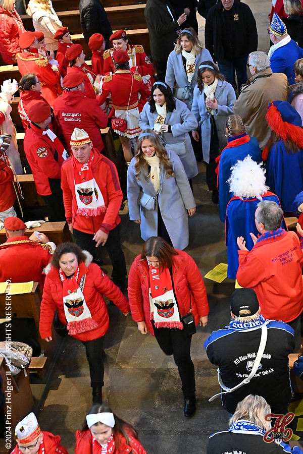 2 Alle unter einer Kappe - die Nordvereine - Begonnen hat der Tag mit der karnevalistischen Messe in der Abteikirche in Duisburg Hamborn. Von dort zogen wir mit den geladen Vereinen zum Rathaus. Wir begleiteten das bunte Programm mit unserer Vorstellung zusammen mit der Kinderprinzencrew.