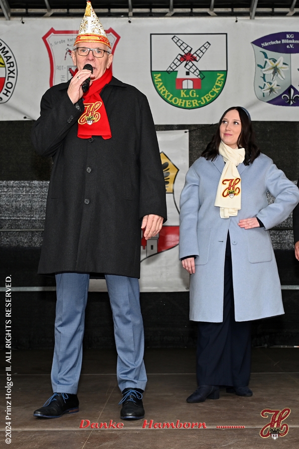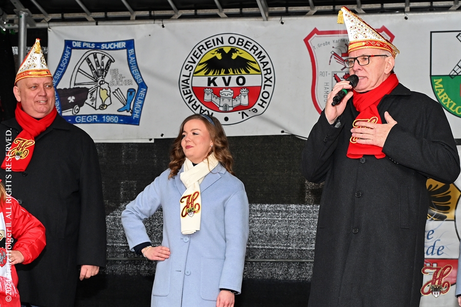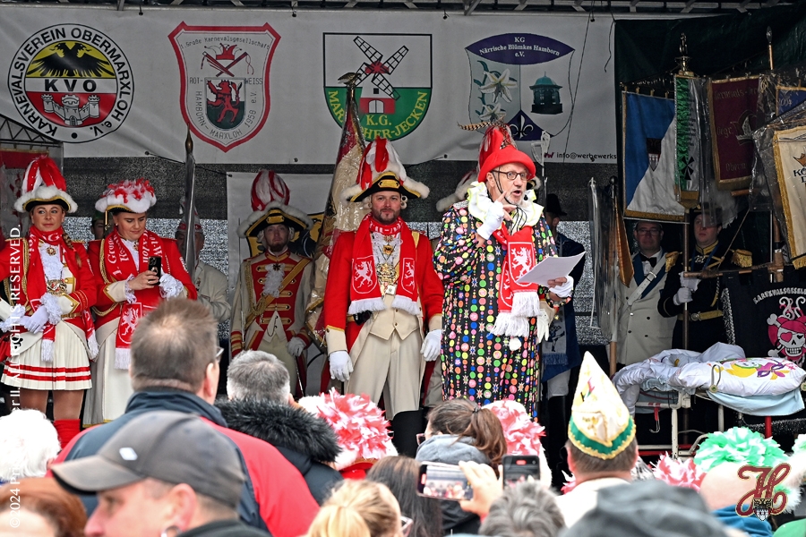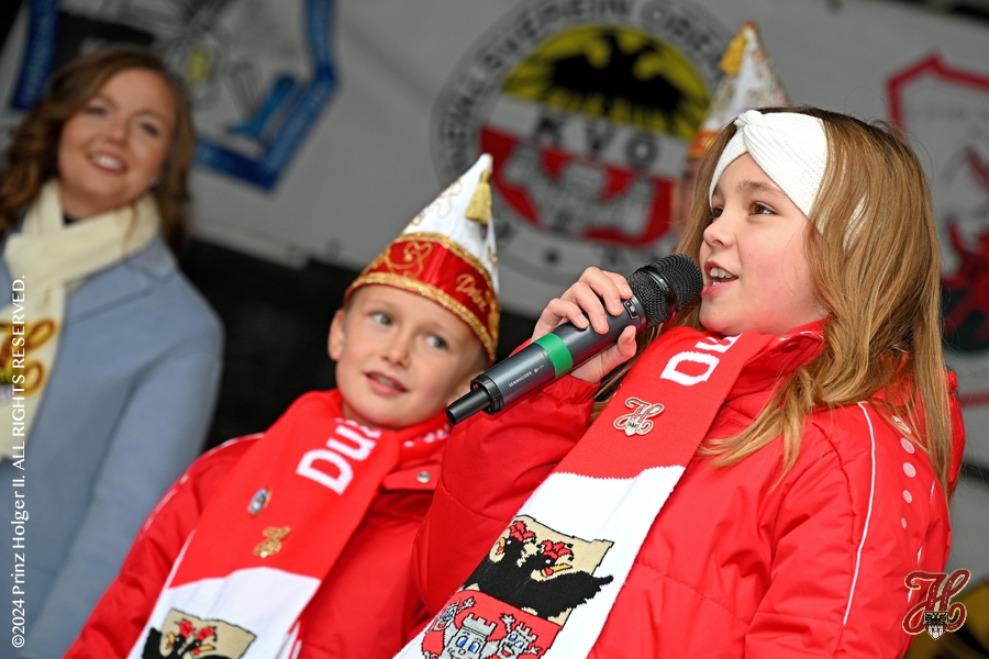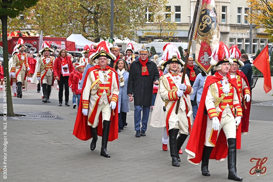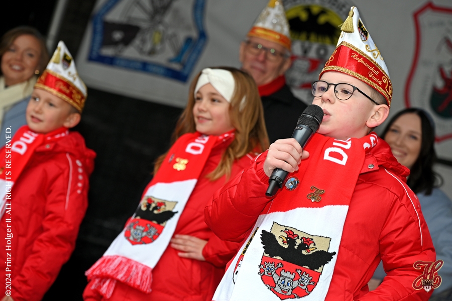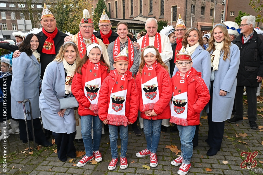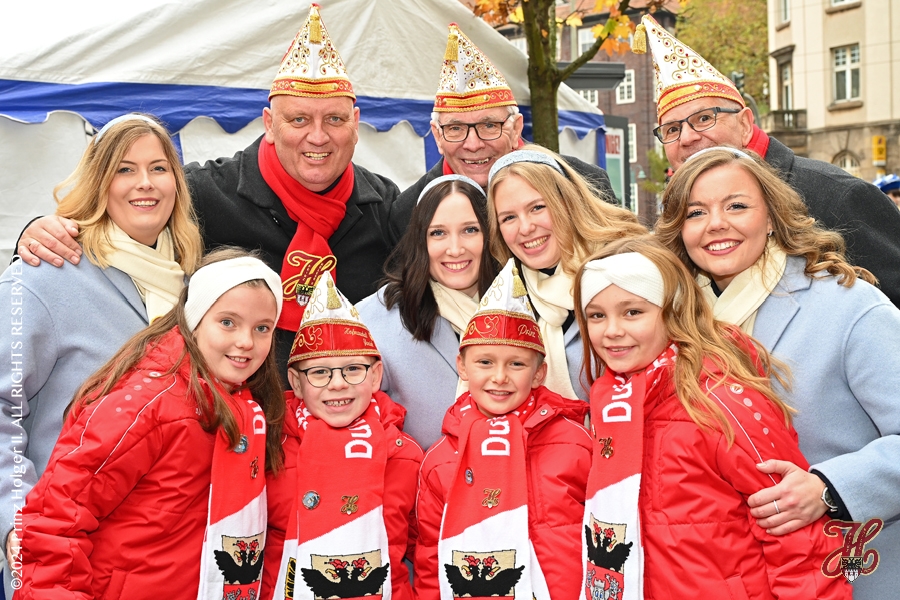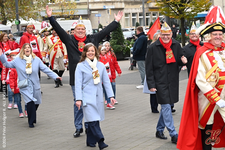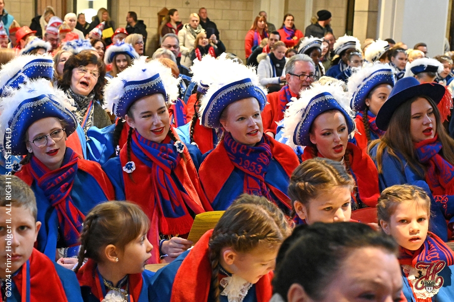 Begonnen hat der Tag mit der karnevalistischen Messe in der Abteikirche in Duisburg Hamborn. Von dort zogen wir mit den geladen Vereinen zum Rathaus. Wir begleiteten das bunte Programm mit unserer Vorstellung zusammen mit der Kinderprinzencrew.