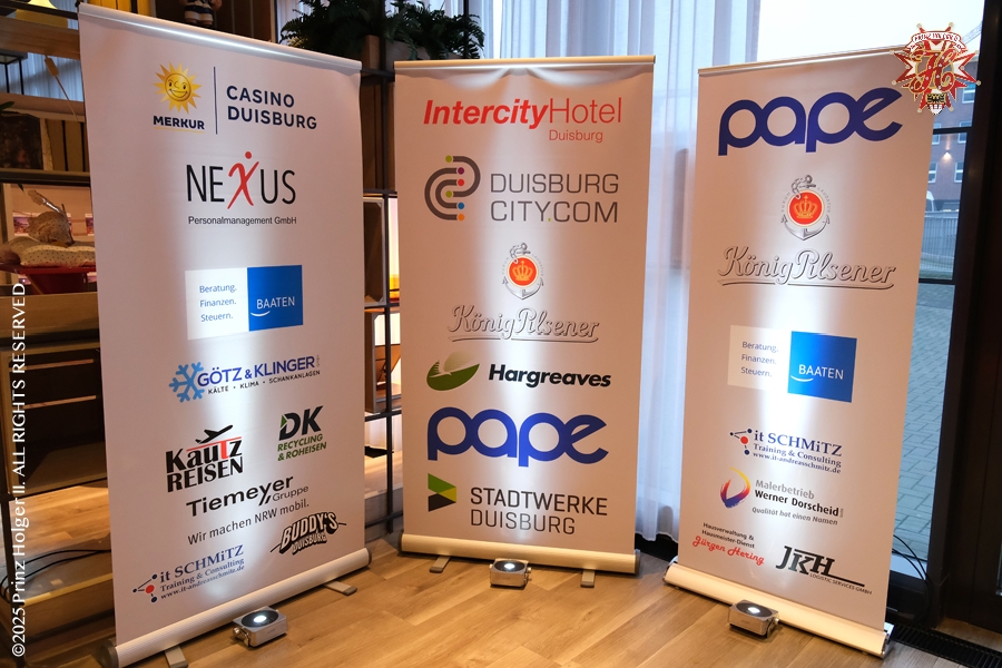 26 Einzug in die Hofburg - 17. Januar 2025, ein kühler Abend vor dem IntercityHotel am Duisburger Hauptbahnhof. Wir begrüßten die anwesenden Gesellschaften vor der Tür mit anschließender Fahnenhissung. Danach gab es ein feucht fröhliches Miteinander im Restaurant und an der Bar.