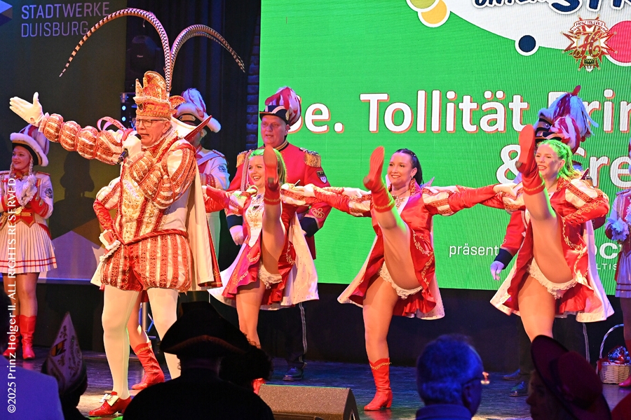 59 In Duisburg feiert man auch Mittwochs - Am Späten Nachmittag hatten wir den ersten Termin in Essen. Hausfrauennachmittag im Pfarrheim Herz-Jesu der 1.Gr. KG „Klein-aaf“ aus Essen-Borbeck. Und dann folge ein langer ,kölscher, Abend im Kultur- und Bürgerzentrum Duisburg-Süd Steinhof Huckingen e.V. Dort hieß es „Jeck unter Strom“.