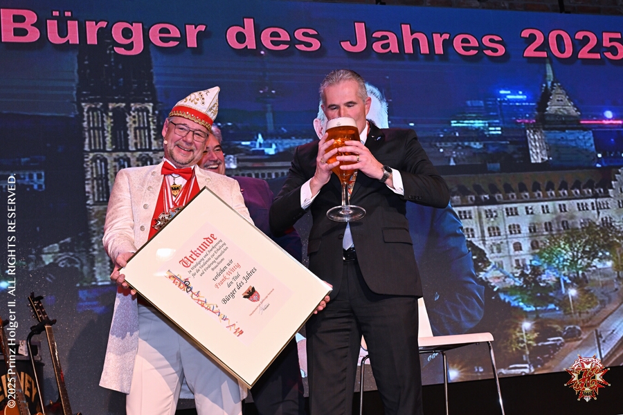 25 Tradition hoch zwei - Am Donnerstag, 13.2., trafen wir uns mit der Kinderprinzencrew in der Bäckerei und Konditorei „Vormann“, mit Familienreicher Tradition. Auch Tradition ist die Verleihung des Titels „Bürger des Jahres“. In diesem Jahr verliehen im Kultur- und Bürgerzentrum Duisburg-Süd Steinhof Huckingen e.V. an Herrn Frank Wittig, geschäftsführender Gesellschafter der Wittig GmbH.