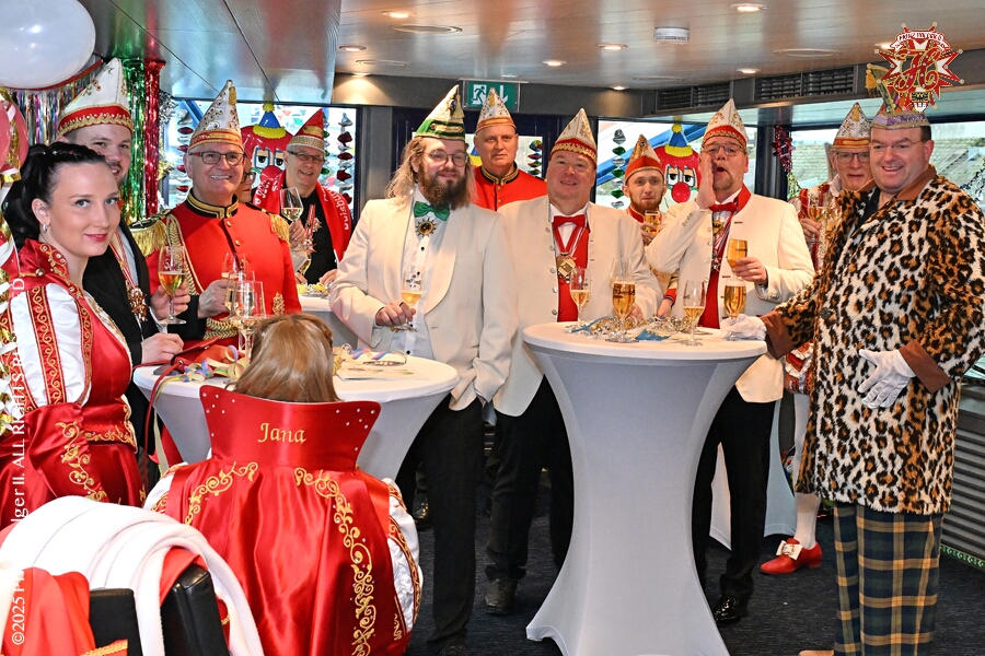 31 Prinzenfahrt auf dem duisport-Schiff - Die Prinzenfahrt auf dem duisport-Schiff, der Karl Jarres ist ein Höhepunkt in jeder Session! Pünktlich um 11:11 Uhr hieß es „Leinen los". Zusammen mit duisport-Vorstand Markus Bangen und Giordana Sperling-Doppstadt sowie Vertretern des HDK. Auch Vertreter aus Duisburgs Karnevalsgesellschaften waren an Bord und es ging volle Kraft voraus über den Rhein.