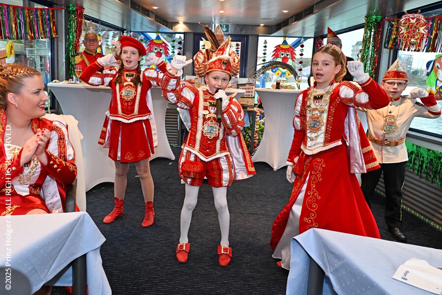 4 Prinzenfahrt auf dem duisport-Schiff - Die Prinzenfahrt auf dem duisport-Schiff, der Karl Jarres ist ein Höhepunkt in jeder Session! Pünktlich um 11:11 Uhr hieß es „Leinen los". Zusammen mit duisport-Vorstand Markus Bangen und Giordana Sperling-Doppstadt sowie Vertretern des HDK. Auch Vertreter aus Duisburgs Karnevalsgesellschaften waren an Bord und es ging volle Kraft voraus über den Rhein.