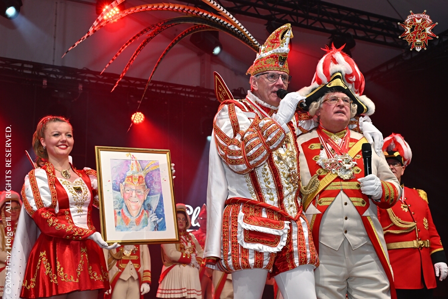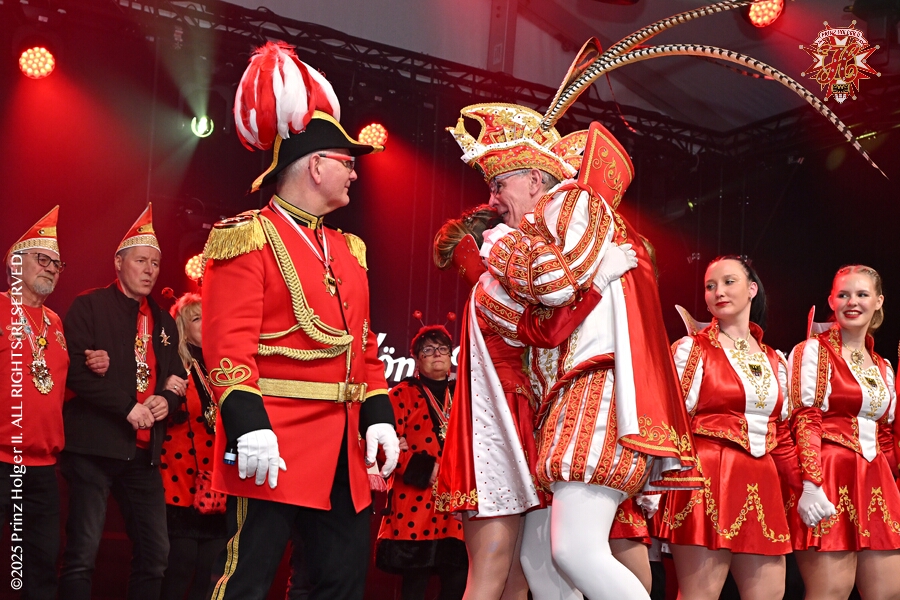 Ein ungewöhnlicher Start in den Rosenmontag. Im Standesamt geben sich vor OB Sören Link Lara und Chris Loosen das Ja-Wort. Dann Prinzenwecken vor dem IntercityHotel. Im Rathaus geht es weiter mit dem Prinzenfrühstück im Ratssaal. Prinz Holger II. und Hofmarschälle erhalten den „Stern“ und gehören jetzt zum „Club der alten Herrn“. Bei Kaiserwetter dann der Umzug durch die Stadt. Bei der After-Zug-Party ist dann Schluss, die Crew werden nach einer erfolgreichen Session verabschiedet.