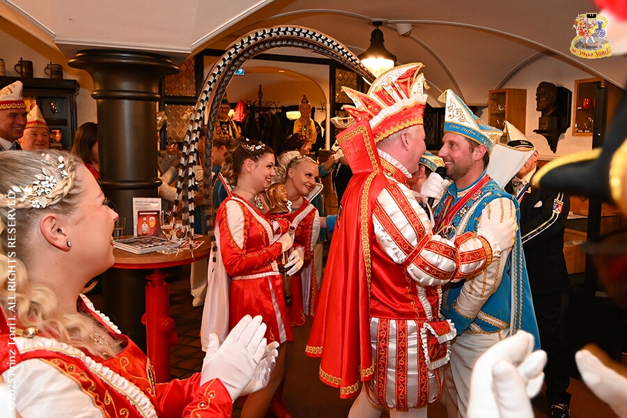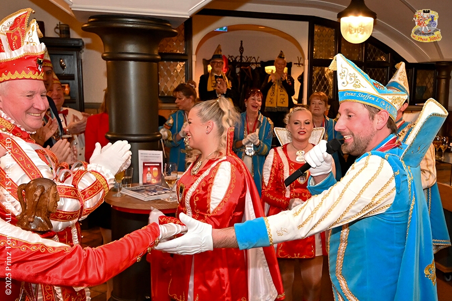 25 Prinzentreffen in der Brauerei - Auf Initiative von Tobias Ostermann, Verkaufsleiter Ruhrgebiet, und HDK Präsident Michel Jansen lud die König Brauerei in Kooperation mit dem HDK zum Prinzentreffen in den Theodor-König-Keller auf dem Gelände der König Brauerei. Dieser spontanen Einladung folgten die Tollitäten aus Essen, Oberhausen und Moers. Prinz Toni I. erwies sich als sympathischer Co-Gastgeber bei diesem unterhaltsamen Abend.