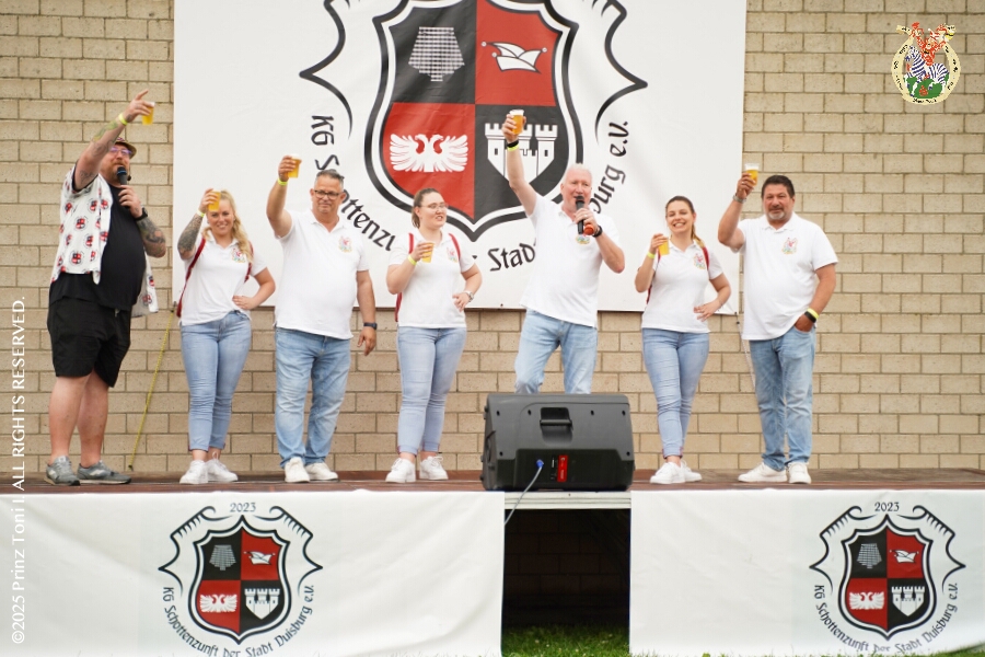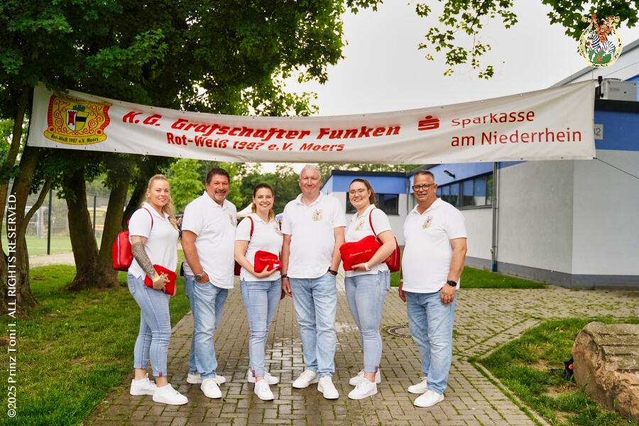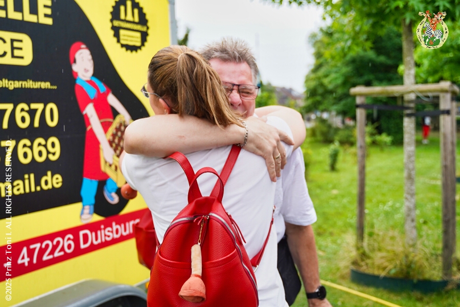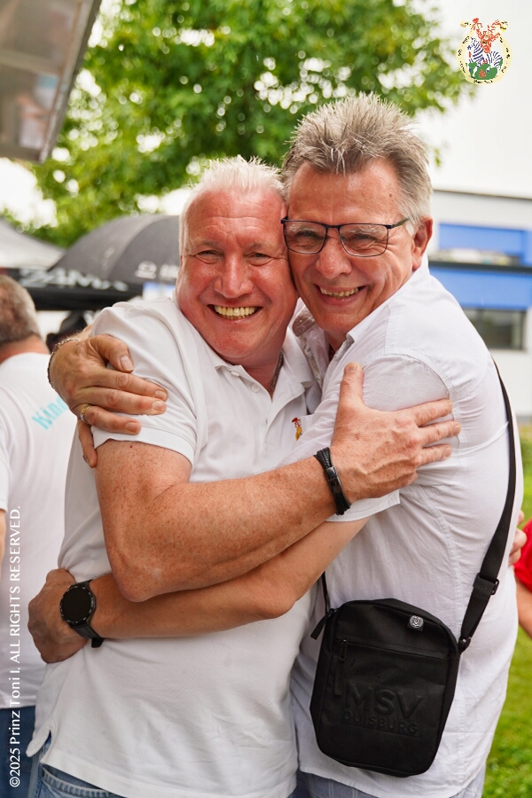 Der Startschuss zur Samstagstour fiel um Mittagszeit im Innenhafen. Wir besuchten die 24. Duisburger Drachenboot Fun-Regatta. Daumen drücken für die Aqua-Garde, ein Boot voller Karnevalisten. Danach besuchten wir das 2. Sommerfest KG Schottenzunft Dusiburg auf der Sportanlage des ETUS Bissingheim. Beim dritten Termin, das Sommerfest der Grafschafter Funken auf dem Quartiersplatz in Moers-Asberg, wurde es ein wenig feucht von Oben, „Abkühlung“. Zurück in Serm überraschten wir Rita und Peter Ambrosius auf der Feier ihre goldenen Hochzeit.