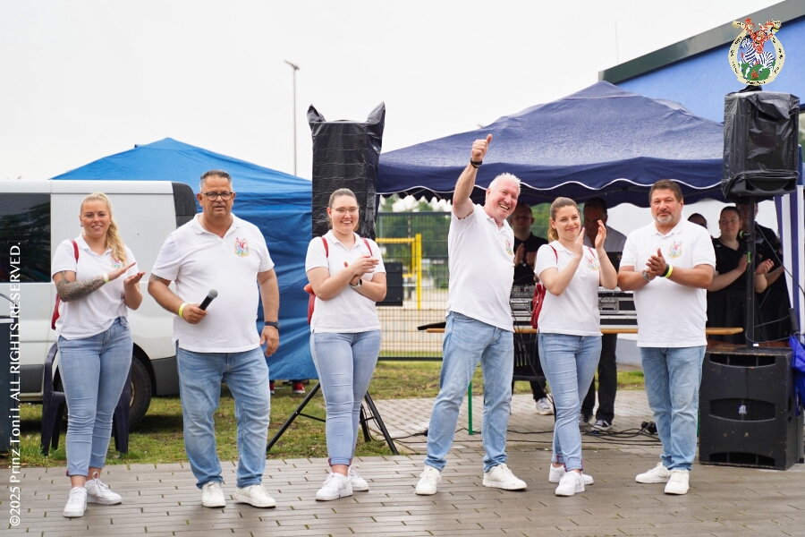 6 Ein schöner und warmer Tag, der 14. Juni - Der Startschuss zur Samstagstour fiel um Mittagszeit im Innenhafen. Wir besuchten die 24. Duisburger Drachenboot Fun-Regatta. Daumen drücken für die Aqua-Garde, ein Boot voller Karnevalisten. Danach besuchten wir das 2. Sommerfest KG Schottenzunft Dusiburg auf der Sportanlage des ETUS Bissingheim. Beim dritten Termin, das Sommerfest der Grafschafter Funken auf dem Quartiersplatz in Moers-Asberg, wurde es ein wenig feucht von Oben, „Abkühlung“. Zurück in Serm überraschten wir Rita und Peter Ambrosius auf der Feier ihre goldenen Hochzeit.