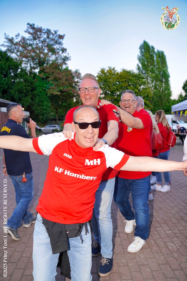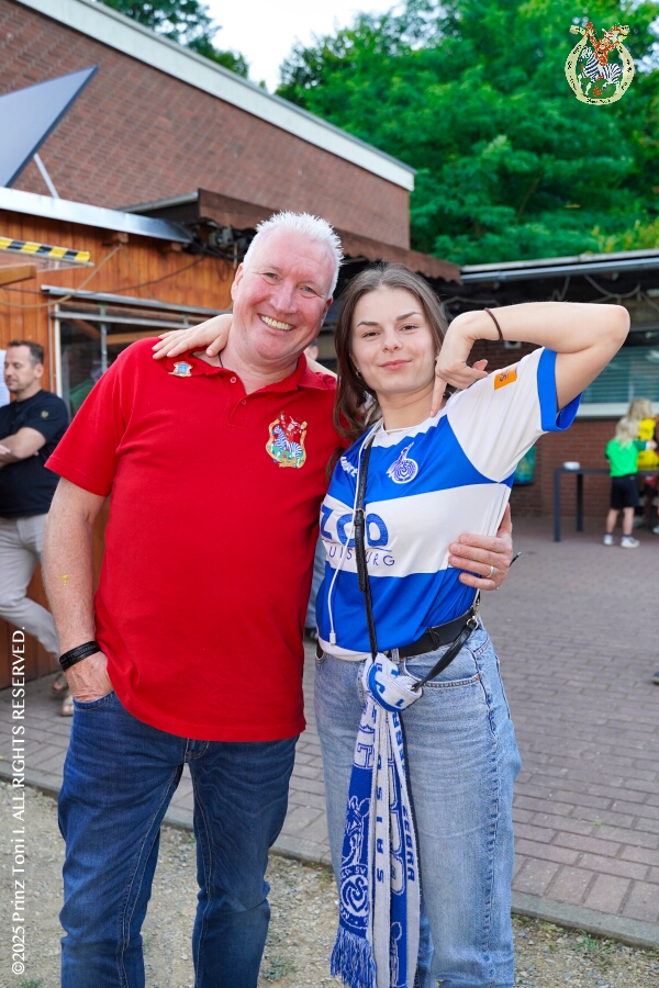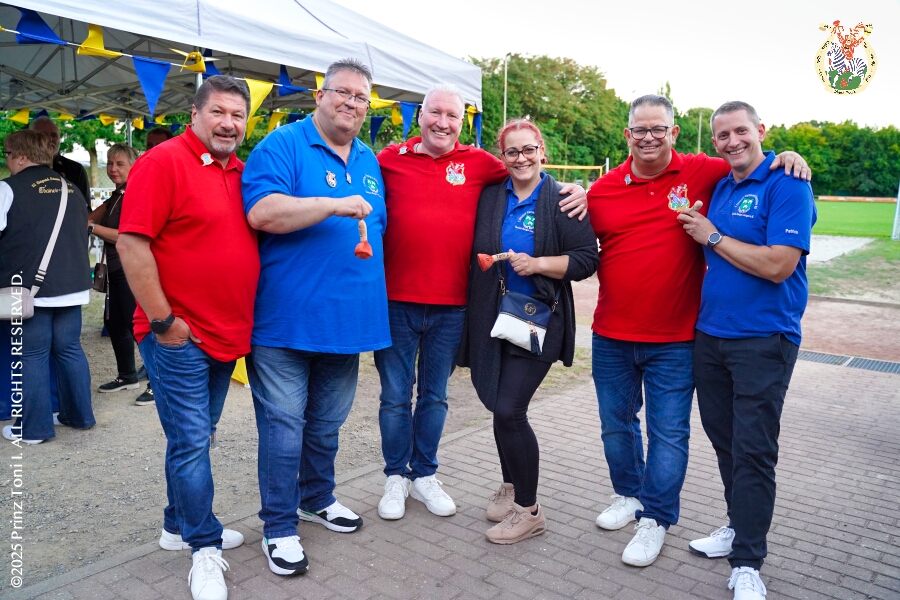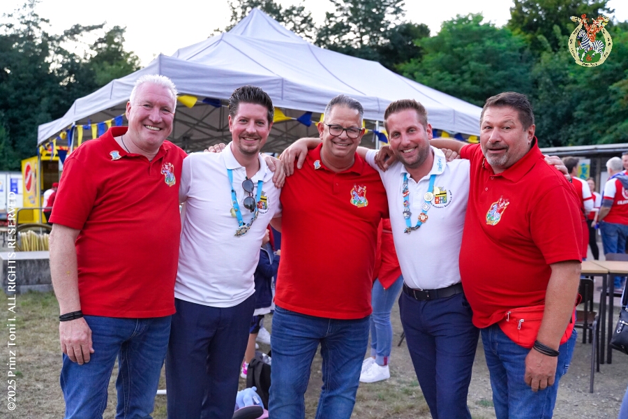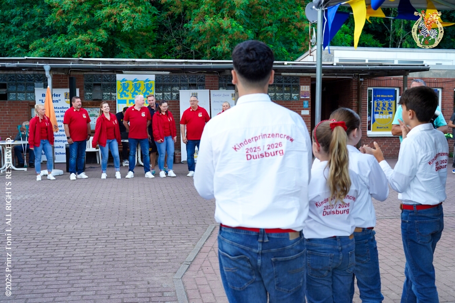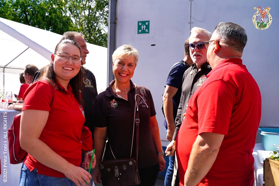 Das „Garde-Grillen“ der Duisburger Prinzengarde ist unser erstes Ziel an diesem Samstag in Duisburg-Meiderich. Danach geht es in den Süden Duisburgs, zur KG Sonniger-Süden. Auf ein kurzes Hallo geht es dann zur KG Rote Funken am Kalkweg. Von dort führt uns der Weg in den Westen Duisburgs. Die 1. KG Baerl Blau-Gelb e.V. feiert ihr Sommerfest auf dem Gelände des TUS Baerl. Das Heimspiel für Hofmarschall Thomas, dem Präsidenten der KG.