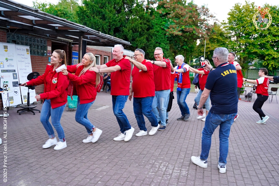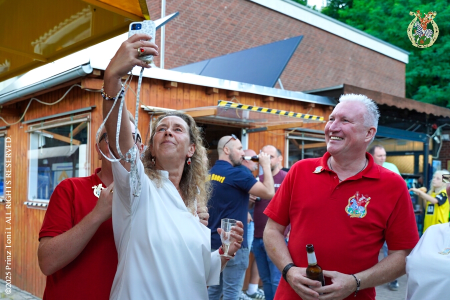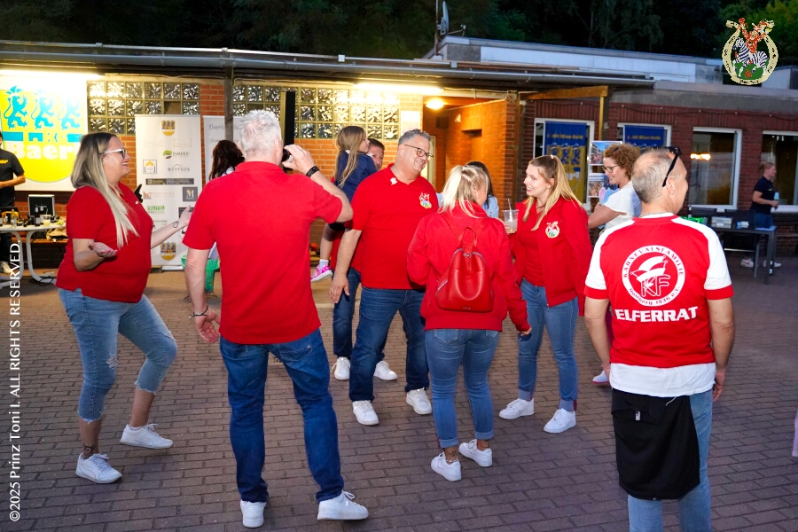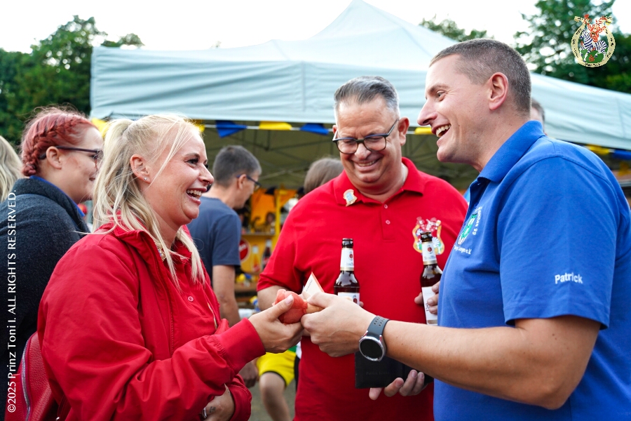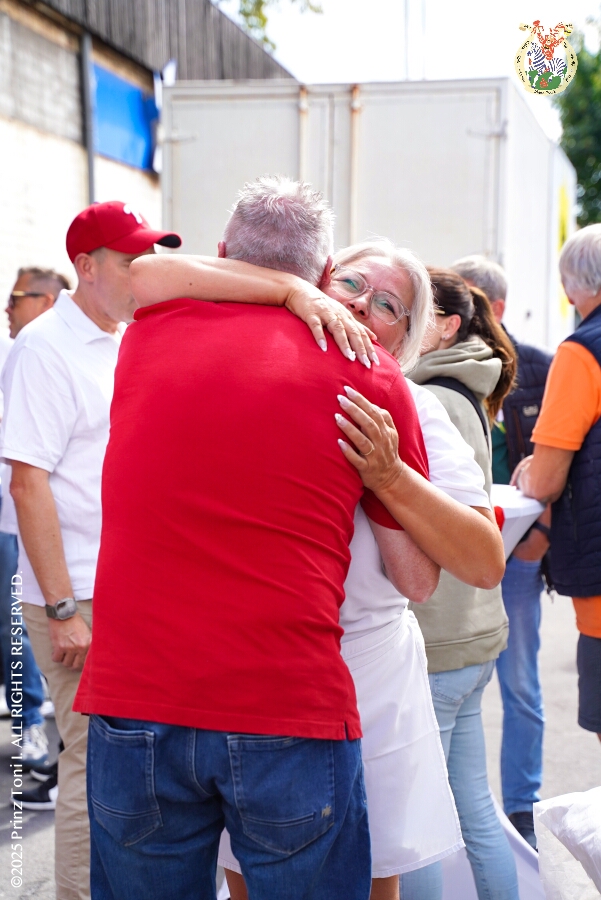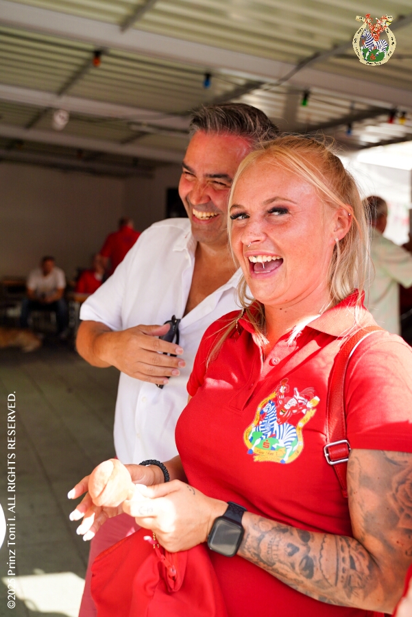 Das „Garde-Grillen“ der Duisburger Prinzengarde ist unser erstes Ziel an diesem Samstag in Duisburg-Meiderich. Danach geht es in den Süden Duisburgs, zur KG Sonniger-Süden. Auf ein kurzes Hallo geht es dann zur KG Rote Funken am Kalkweg. Von dort führt uns der Weg in den Westen Duisburgs. Die 1. KG Baerl Blau-Gelb e.V. feiert ihr Sommerfest auf dem Gelände des TUS Baerl. Das Heimspiel für Hofmarschall Thomas, dem Präsidenten der KG.