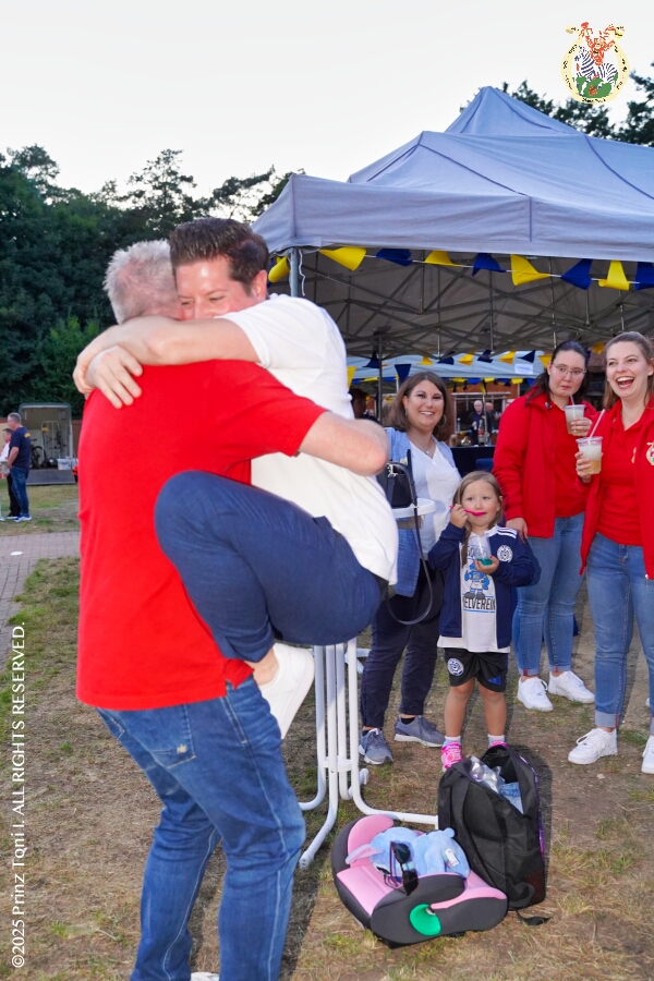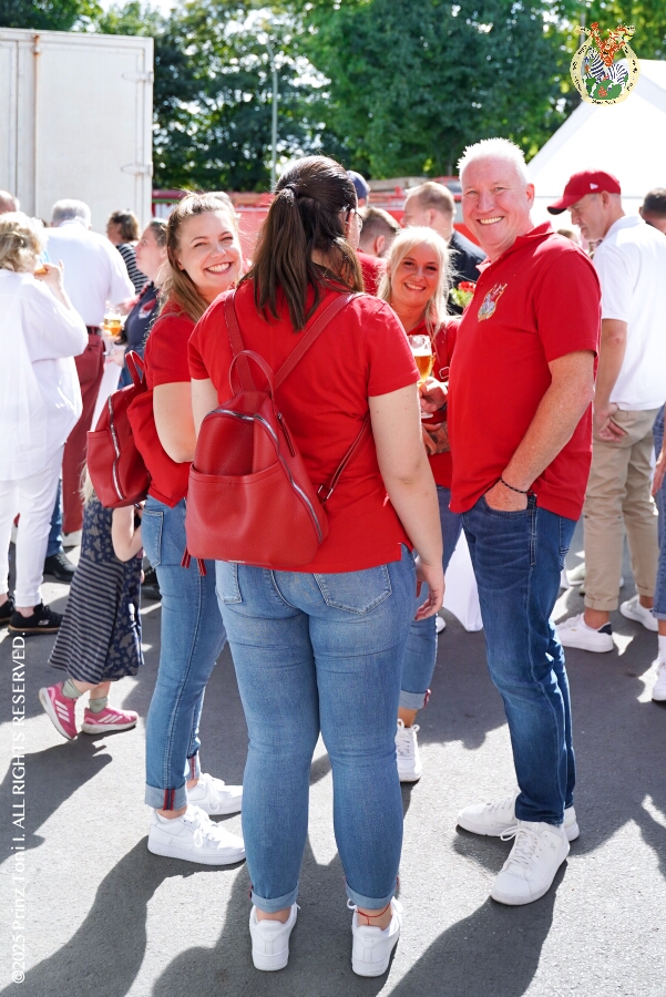 24 30. August, 4 mal Sommerfest - Das „Garde-Grillen“ der Duisburger Prinzengarde ist unser erstes Ziel an diesem Samstag in Duisburg-Meiderich. Danach geht es in den Süden Duisburgs, zur KG Sonniger-Süden. Auf ein kurzes Hallo geht es dann zur KG Rote Funken am Kalkweg. Von dort führt uns der Weg in den Westen Duisburgs. Die 1. KG Baerl Blau-Gelb e.V. feiert ihr Sommerfest auf dem Gelände des TUS Baerl. Das Heimspiel für Hofmarschall Thomas, dem Präsidenten der KG.