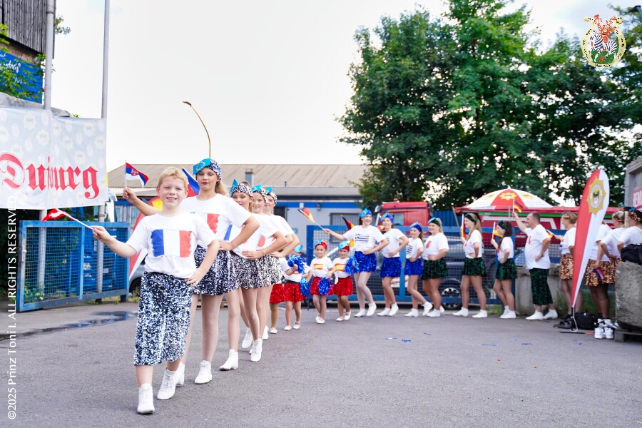 12 30. August, 4 mal Sommerfest - Das „Garde-Grillen“ der Duisburger Prinzengarde ist unser erstes Ziel an diesem Samstag in Duisburg-Meiderich. Danach geht es in den Süden Duisburgs, zur KG Sonniger-Süden. Auf ein kurzes Hallo geht es dann zur KG Rote Funken am Kalkweg. Von dort führt uns der Weg in den Westen Duisburgs. Die 1. KG Baerl Blau-Gelb e.V. feiert ihr Sommerfest auf dem Gelände des TUS Baerl. Das Heimspiel für Hofmarschall Thomas, dem Präsidenten der KG.