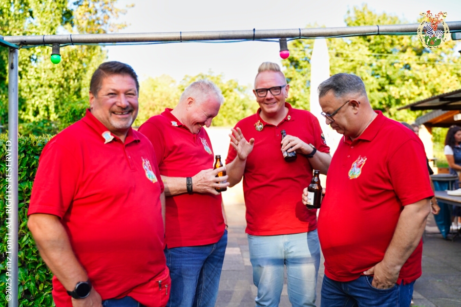 25 30. August, 4 mal Sommerfest - Das „Garde-Grillen“ der Duisburger Prinzengarde ist unser erstes Ziel an diesem Samstag in Duisburg-Meiderich. Danach geht es in den Süden Duisburgs, zur KG Sonniger-Süden. Auf ein kurzes Hallo geht es dann zur KG Rote Funken am Kalkweg. Von dort führt uns der Weg in den Westen Duisburgs. Die 1. KG Baerl Blau-Gelb e.V. feiert ihr Sommerfest auf dem Gelände des TUS Baerl. Das Heimspiel für Hofmarschall Thomas, dem Präsidenten der KG.