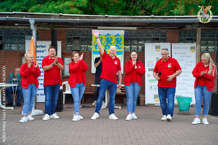 40 30. August, 4 mal Sommerfest - Das „Garde-Grillen“ der Duisburger Prinzengarde ist unser erstes Ziel an diesem Samstag in Duisburg-Meiderich. Danach geht es in den Süden Duisburgs, zur KG Sonniger-Süden. Auf ein kurzes Hallo geht es dann zur KG Rote Funken am Kalkweg. Von dort führt uns der Weg in den Westen Duisburgs. Die 1. KG Baerl Blau-Gelb e.V. feiert ihr Sommerfest auf dem Gelände des TUS Baerl. Das Heimspiel für Hofmarschall Thomas, dem Präsidenten der KG.