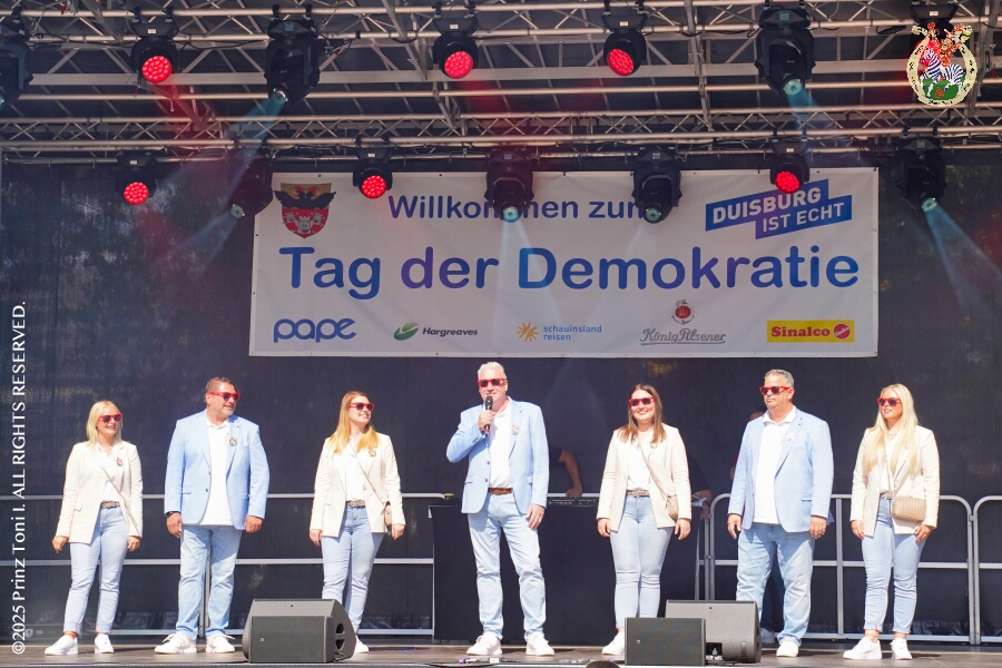 Ein Samstag voller Abwechslung. Der erste Termin, „Tag der Demokratie“, war auf dem Burgplatz. Eine Veranstaltung der Stadt Duisburg, dem HDK und diversen Organisationen aus der Stadt. Danach hieß es „Herzlichen Glückwunsch zum 80. Geburtstag“ liebe Irma. Danach ging es zur Platzanlage des TUS Viktoria 06 in Buchholz zum Benefiz-Spiel gegen die Traditionsmannschaft von Schalke 04. Im Sermer „Landgasthof-Schenke“ trafen wir den Elferrat der KG Südstern und wir sagten Hallo bei den „Sermer Damenstößchen“. Abschluss des Tages war dann auf dem 40. Geburtstag von Christian in der „MaRa Event Location“.