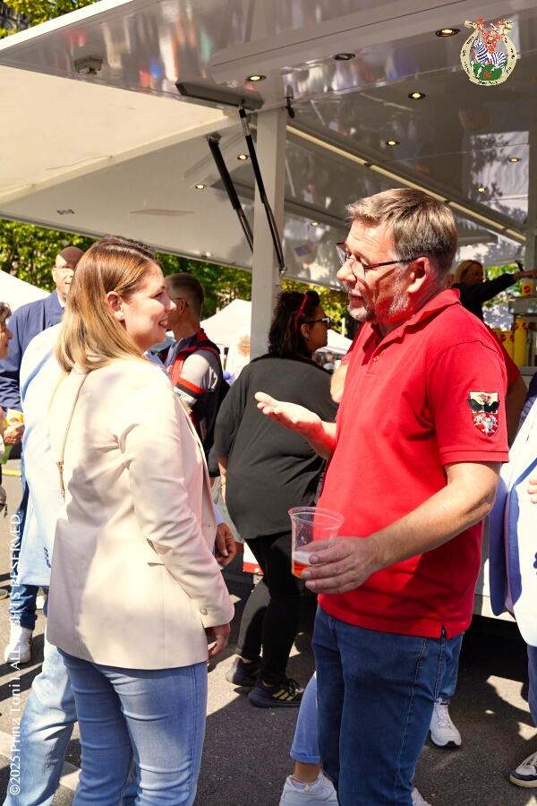 22 Samstags-Tour, 6. September - Ein Samstag voller Abwechslung. Der erste Termin, „Tag der Demokratie“, war auf dem Burgplatz. Eine Veranstaltung der Stadt Duisburg, dem HDK und diversen Organisationen aus der Stadt. Danach hieß es „Herzlichen Glückwunsch zum 80. Geburtstag“ liebe Irma. Danach ging es zur Platzanlage des TUS Viktoria 06 in Buchholz zum Benefiz-Spiel gegen die Traditionsmannschaft von Schalke 04. Im Sermer „Landgasthof-Schenke“ trafen wir den Elferrat der KG Südstern und wir sagten Hallo bei den „Sermer Damenstößchen“. Abschluss des Tages war dann auf dem 40. Geburtstag von Christian in der „MaRa Event Location“.