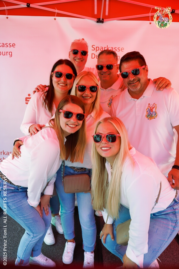 8 Samstags-Tour, 6. September - Ein Samstag voller Abwechslung. Der erste Termin, „Tag der Demokratie“, war auf dem Burgplatz. Eine Veranstaltung der Stadt Duisburg, dem HDK und diversen Organisationen aus der Stadt. Danach hieß es „Herzlichen Glückwunsch zum 80. Geburtstag“ liebe Irma. Danach ging es zur Platzanlage des TUS Viktoria 06 in Buchholz zum Benefiz-Spiel gegen die Traditionsmannschaft von Schalke 04. Im Sermer „Landgasthof-Schenke“ trafen wir den Elferrat der KG Südstern und wir sagten Hallo bei den „Sermer Damenstößchen“. Abschluss des Tages war dann auf dem 40. Geburtstag von Christian in der „MaRa Event Location“.