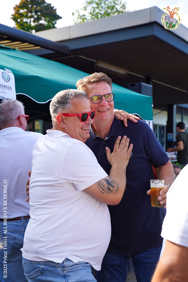 24 Samstags-Tour, 6. September - Ein Samstag voller Abwechslung. Der erste Termin, „Tag der Demokratie“, war auf dem Burgplatz. Eine Veranstaltung der Stadt Duisburg, dem HDK und diversen Organisationen aus der Stadt. Danach hieß es „Herzlichen Glückwunsch zum 80. Geburtstag“ liebe Irma. Danach ging es zur Platzanlage des TUS Viktoria 06 in Buchholz zum Benefiz-Spiel gegen die Traditionsmannschaft von Schalke 04. Im Sermer „Landgasthof-Schenke“ trafen wir den Elferrat der KG Südstern und wir sagten Hallo bei den „Sermer Damenstößchen“. Abschluss des Tages war dann auf dem 40. Geburtstag von Christian in der „MaRa Event Location“.