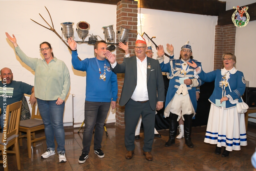 7 Vergatterung und Hoppeditz - Im „Ungelsheimer Treff“ begann am Freitagabend, 7. 11. das 1. Auftakt Wochenende der neuen Karnevalssession. Wir waren Gäste bei der „Vergatterung“ der Ehrengarde. Heimspiel für Rabea und Oliver. Zum nächsten Heimspiel, das von Thomas, waren wir dann zum Hoppeditzerwachen seiner KG in Baerl im „Waldhof“.