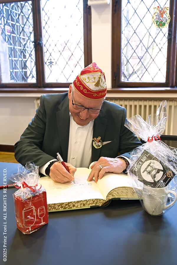 25 Empfang im Rathaus der Stadt Duisburg -- OB Sören Link empfing se. des. Tollität Prinz Karneval der Stadt Duisburg 2026,Toni I.. mit seiner Crew im Rathaus. Ein Eintrag In das Gästebuch der Stadt Duisburg durfte hierbei nicht fehlen.