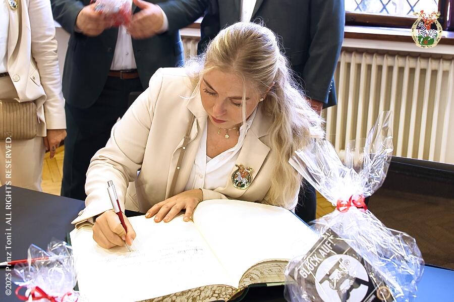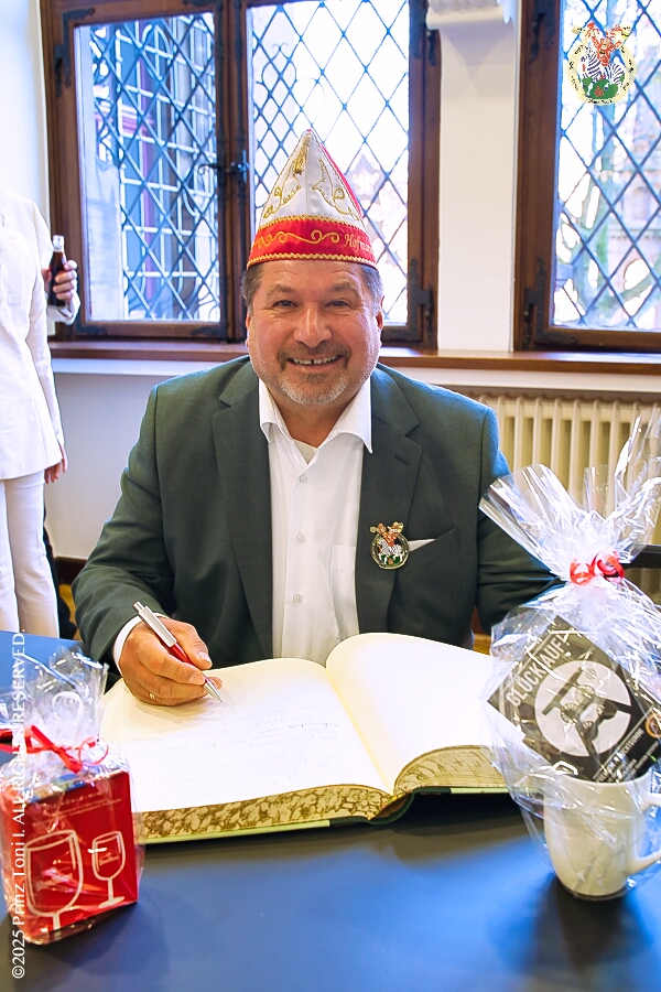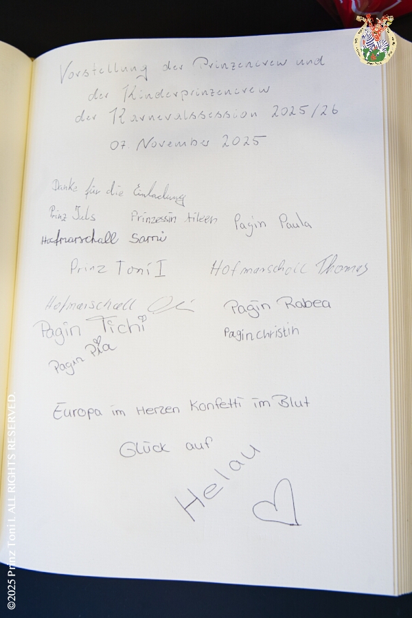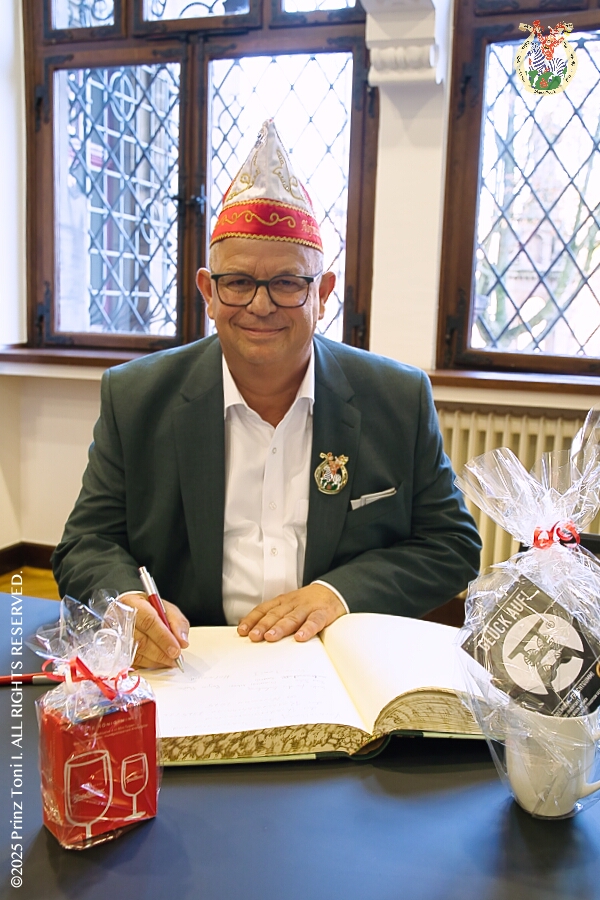 OB Sören Link empfing se. des. Tollität Prinz Karneval der Stadt Duisburg 2026,Toni I.. mit seiner Crew im Rathaus. Ein Eintrag In das Gästebuch der Stadt Duisburg durfte hierbei nicht fehlen.