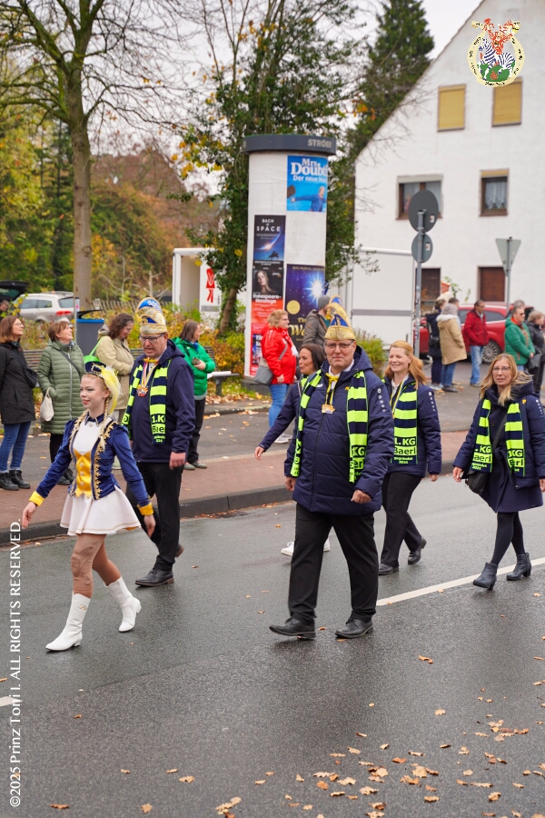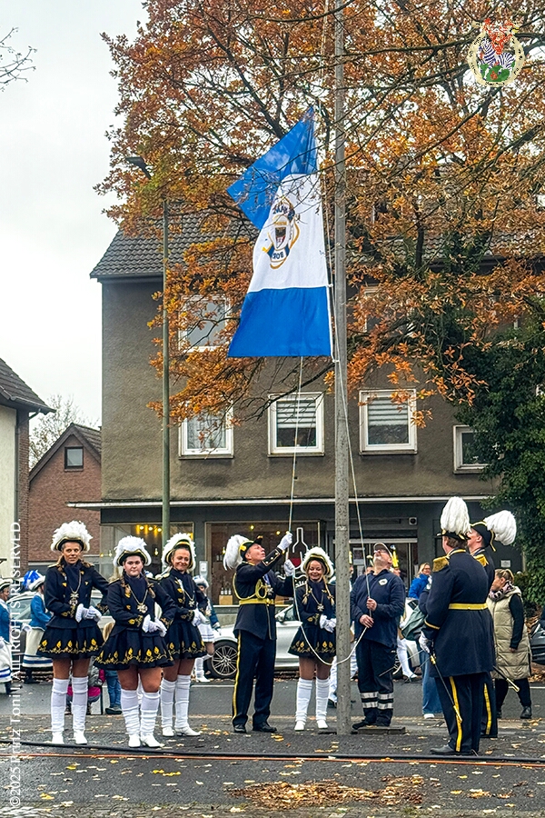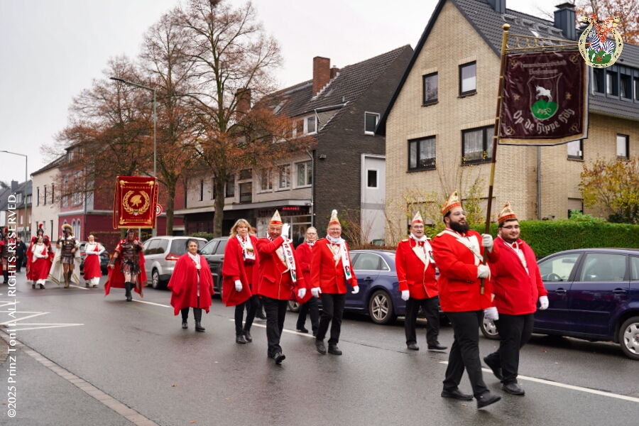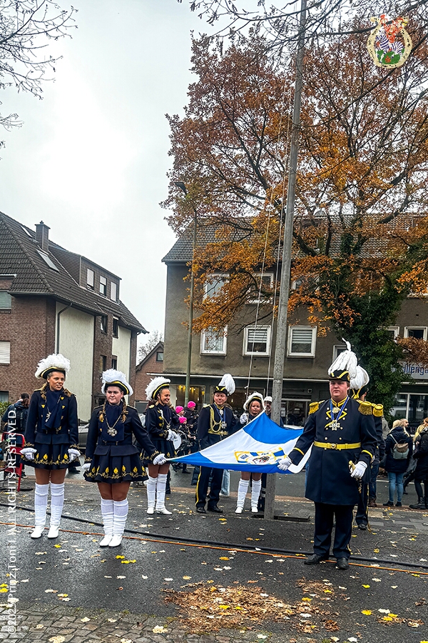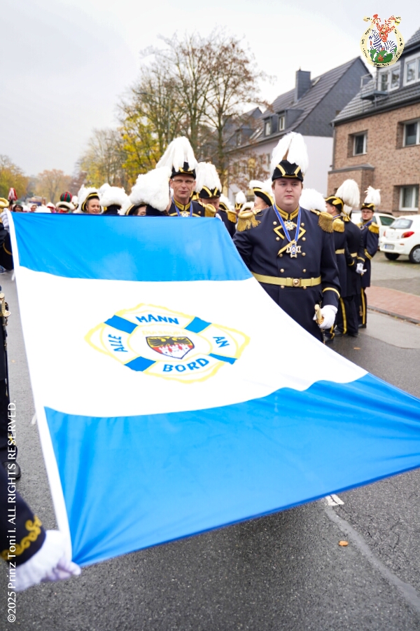 31 2 Mal Heimspiel - Sonntagmorgen 9. November, Biwak der KG Alle Mann an Bord - die »Blauen Jungs« 1955 e.V., der „Heimathafen“ für unsere Christin und indirekt auch für se. des. Tollität. Ein Geschenk gab es auch, eine „Pömpel“ aus Marzipan. Danach dann zum Hoppditzerwachen der KG Südstern. Die Heimatgesellschaft in Serm von Pia und Toni.