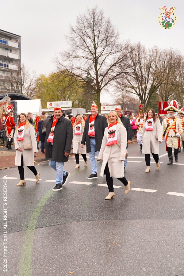 25 2 Mal Heimspiel - Sonntagmorgen 9. November, Biwak der KG Alle Mann an Bord - die »Blauen Jungs« 1955 e.V., der „Heimathafen“ für unsere Christin und indirekt auch für se. des. Tollität. Ein Geschenk gab es auch, eine „Pömpel“ aus Marzipan. Danach dann zum Hoppditzerwachen der KG Südstern. Die Heimatgesellschaft in Serm von Pia und Toni.