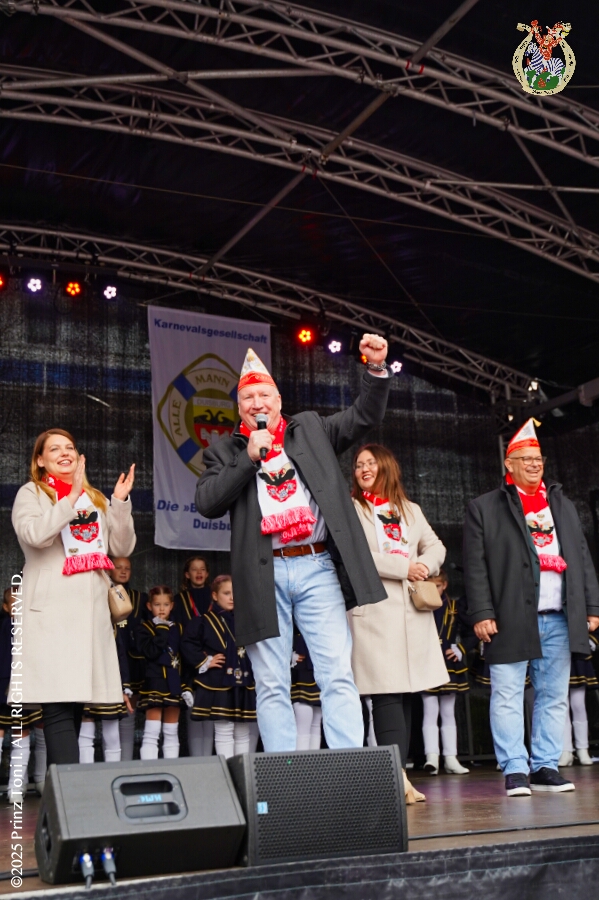 4 2 Mal Heimspiel - Sonntagmorgen 9. November, Biwak der KG Alle Mann an Bord - die »Blauen Jungs« 1955 e.V., der „Heimathafen“ für unsere Christin und indirekt auch für se. des. Tollität. Ein Geschenk gab es auch, eine „Pömpel“ aus Marzipan. Danach dann zum Hoppditzerwachen der KG Südstern. Die Heimatgesellschaft in Serm von Pia und Toni.