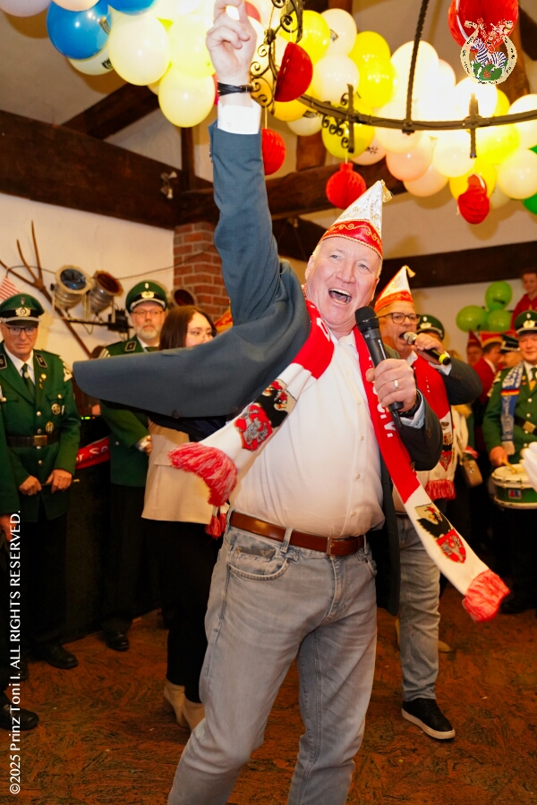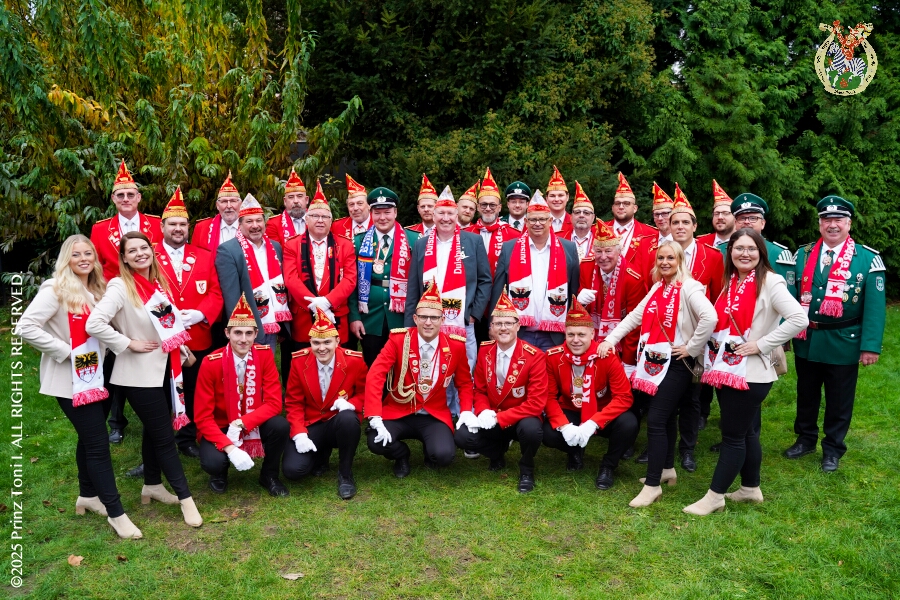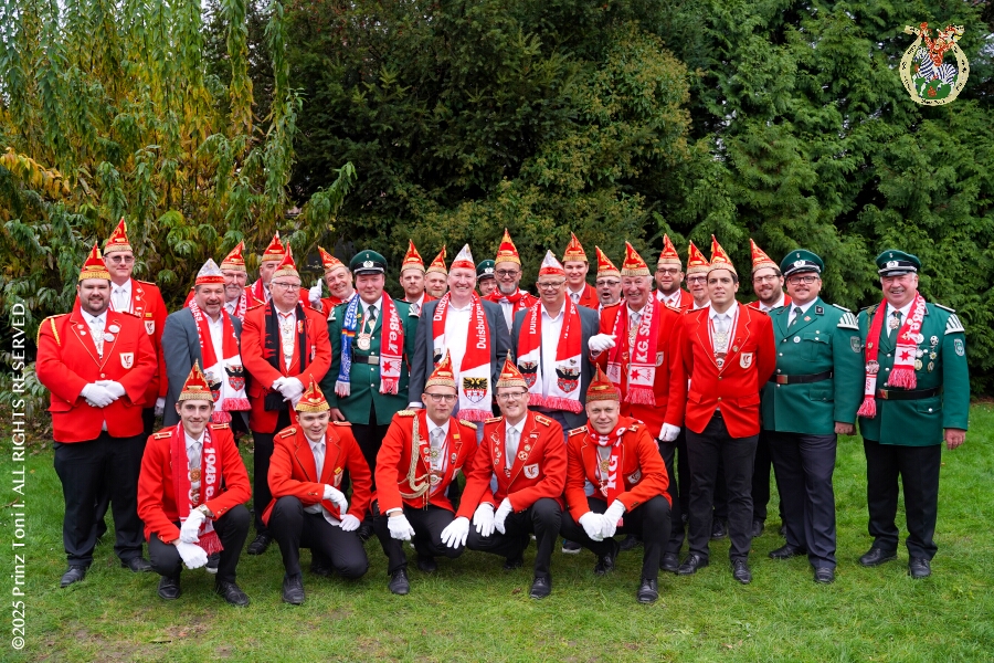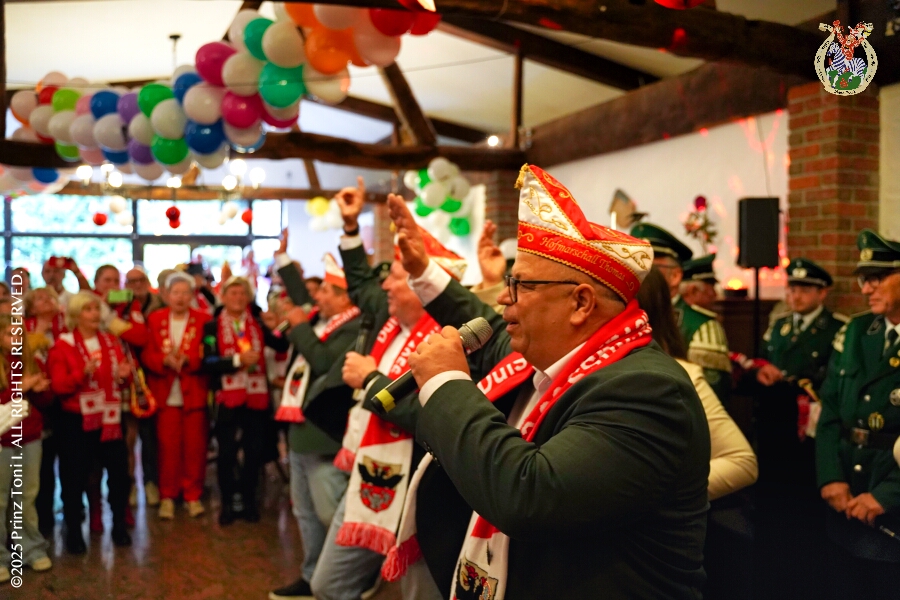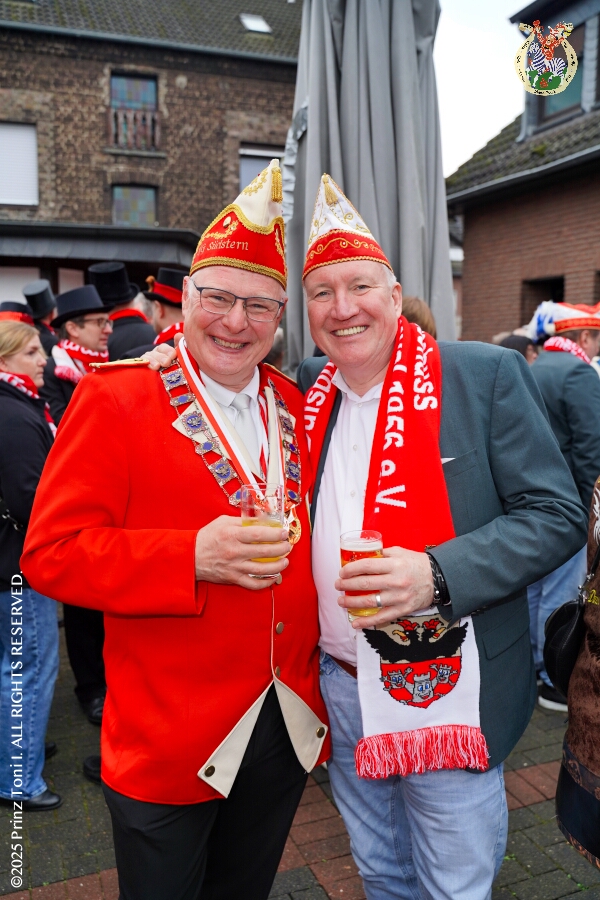 24 2 Mal Heimspiel - Sonntagmorgen 9. November, Biwak der KG Alle Mann an Bord - die »Blauen Jungs« 1955 e.V., der „Heimathafen“ für unsere Christin und indirekt auch für se. des. Tollität. Ein Geschenk gab es auch, eine „Pömpel“ aus Marzipan. Danach dann zum Hoppditzerwachen der KG Südstern. Die Heimatgesellschaft in Serm von Pia und Toni.
