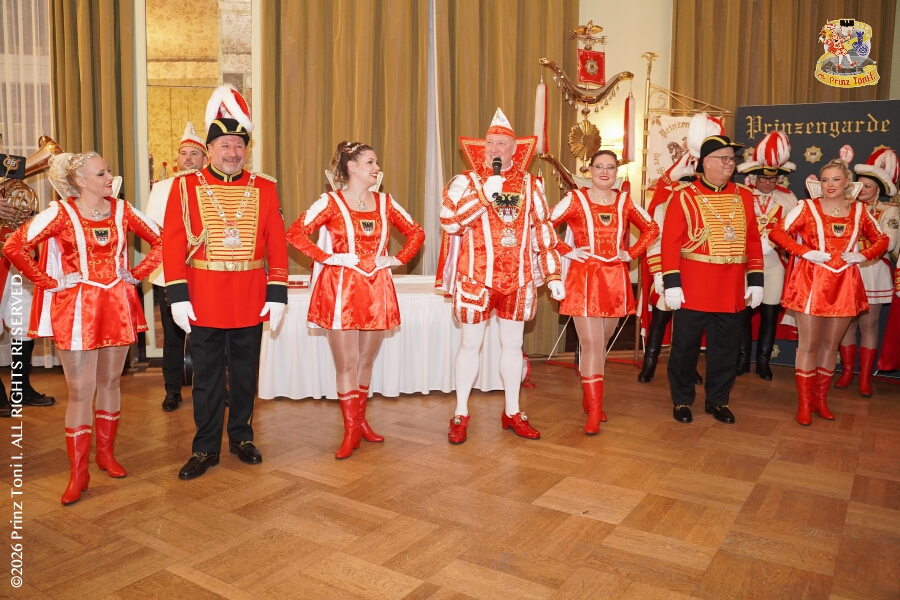 6 Endlich Karnevalsprinz: Toni I. - Am Samstag 10. Januar 2026 war es endlich soweit. Kürung se. Tollität Prinz Toni I., im Rahmen eines hochklassigen Galaabends in der ausverkauften Mercatorhalle in Duisburg. Ein stimmungsvoller Abend mit Show, Musik und Tanz. Vorab präsentierte sich die Prinzencrew 2026 im WYNDHAM Hotel Duisburger Hof der Leibgarde se. Tollität, die Prinzengarde der Stadt Duisburg.