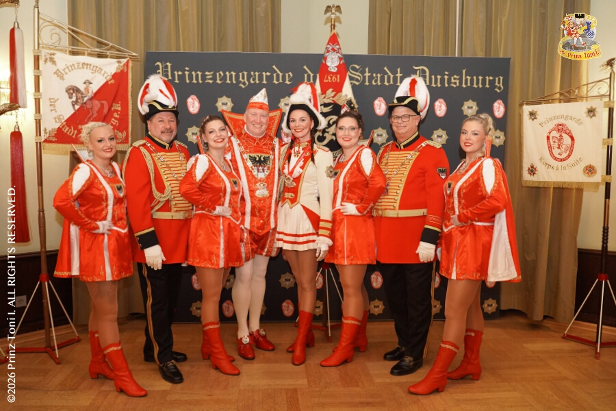 1 Endlich Karnevalsprinz: Toni I. - Am Samstag 10. Januar 2026 war es endlich soweit. Kürung se. Tollität Prinz Toni I., im Rahmen eines hochklassigen Galaabends in der ausverkauften Mercatorhalle in Duisburg. Ein stimmungsvoller Abend mit Show, Musik und Tanz. Vorab präsentierte sich die Prinzencrew 2026 im WYNDHAM Hotel Duisburger Hof der Leibgarde se. Tollität, die Prinzengarde der Stadt Duisburg.