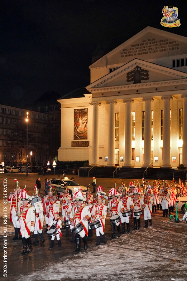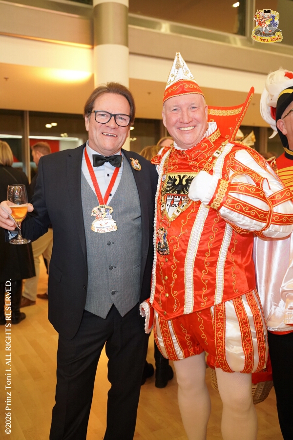 25 Endlich Karnevalsprinz: Toni I. - Am Samstag 10. Januar 2026 war es endlich soweit. Kürung se. Tollität Prinz Toni I., im Rahmen eines hochklassigen Galaabends in der ausverkauften Mercatorhalle in Duisburg. Ein stimmungsvoller Abend mit Show, Musik und Tanz. Vorab präsentierte sich die Prinzencrew 2026 im WYNDHAM Hotel Duisburger Hof der Leibgarde se. Tollität, die Prinzengarde der Stadt Duisburg.