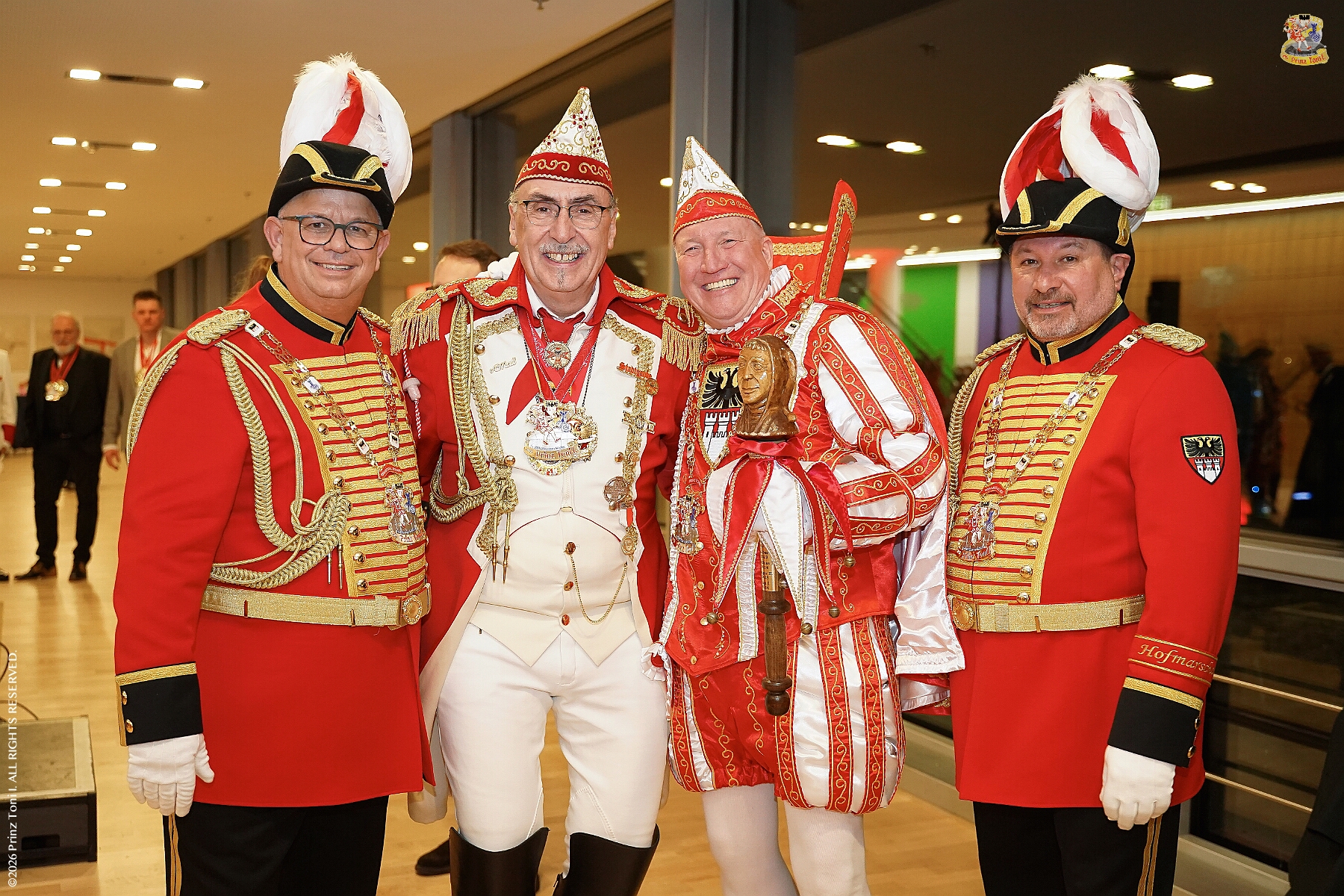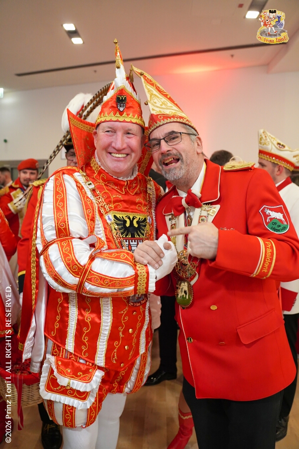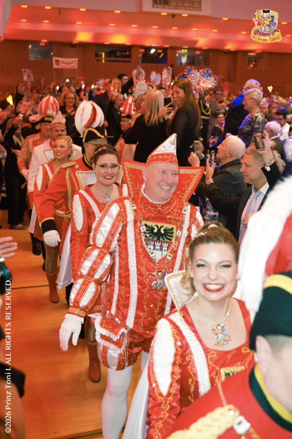 125 Endlich Karnevalsprinz: Toni I. - Am Samstag 10. Januar 2026 war es endlich soweit. Kürung se. Tollität Prinz Toni I., im Rahmen eines hochklassigen Galaabends in der ausverkauften Mercatorhalle in Duisburg. Ein stimmungsvoller Abend mit Show, Musik und Tanz. Vorab präsentierte sich die Prinzencrew 2026 im WYNDHAM Hotel Duisburger Hof der Leibgarde se. Tollität, die Prinzengarde der Stadt Duisburg.