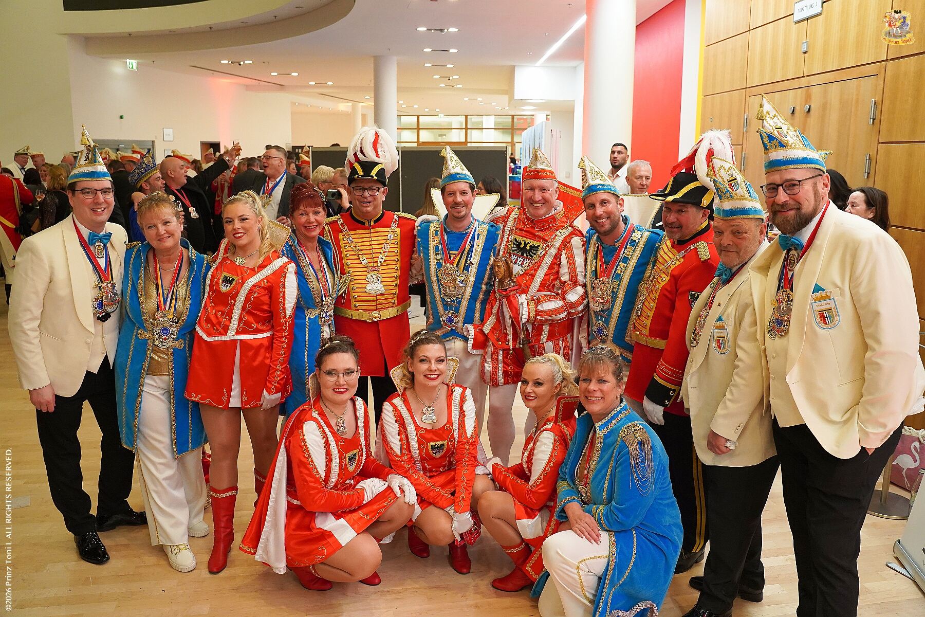 150 Endlich Karnevalsprinz: Toni I. - Am Samstag 10. Januar 2026 war es endlich soweit. Kürung se. Tollität Prinz Toni I., im Rahmen eines hochklassigen Galaabends in der ausverkauften Mercatorhalle in Duisburg. Ein stimmungsvoller Abend mit Show, Musik und Tanz. Vorab präsentierte sich die Prinzencrew 2026 im WYNDHAM Hotel Duisburger Hof der Leibgarde se. Tollität, die Prinzengarde der Stadt Duisburg.