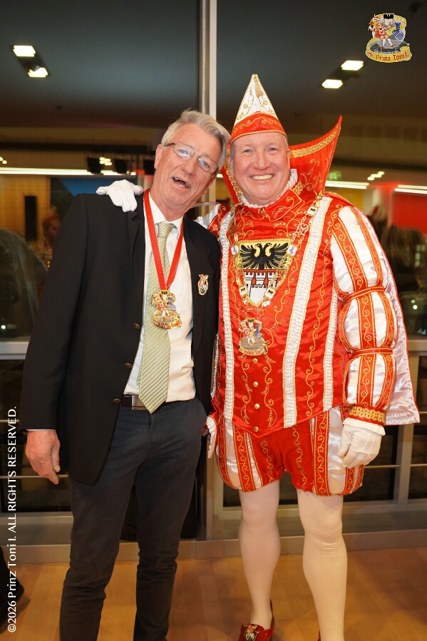 100 Endlich Karnevalsprinz: Toni I. - Am Samstag 10. Januar 2026 war es endlich soweit. Kürung se. Tollität Prinz Toni I., im Rahmen eines hochklassigen Galaabends in der ausverkauften Mercatorhalle in Duisburg. Ein stimmungsvoller Abend mit Show, Musik und Tanz. Vorab präsentierte sich die Prinzencrew 2026 im WYNDHAM Hotel Duisburger Hof der Leibgarde se. Tollität, die Prinzengarde der Stadt Duisburg.