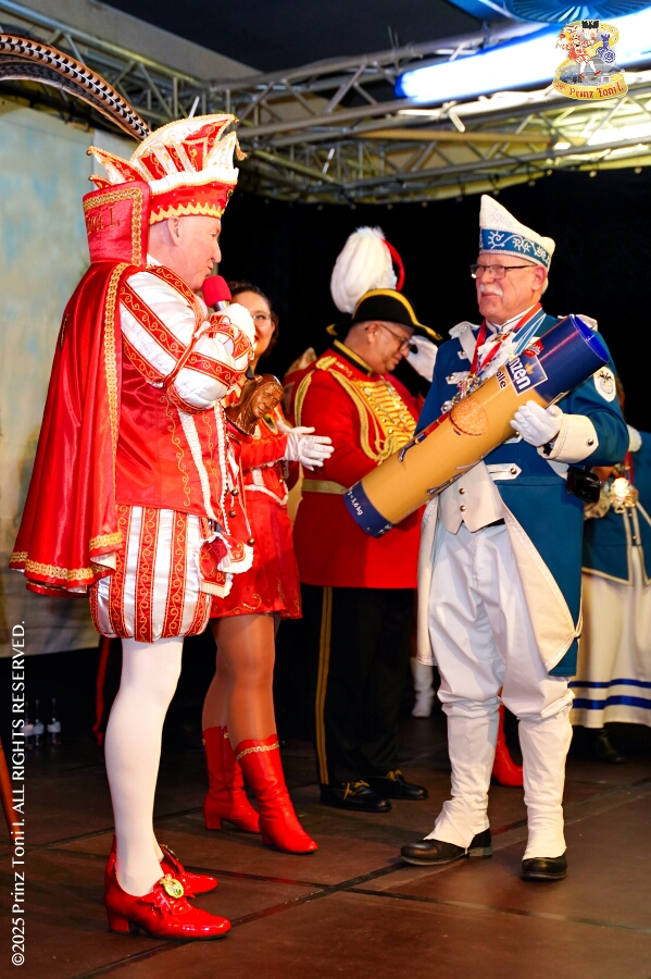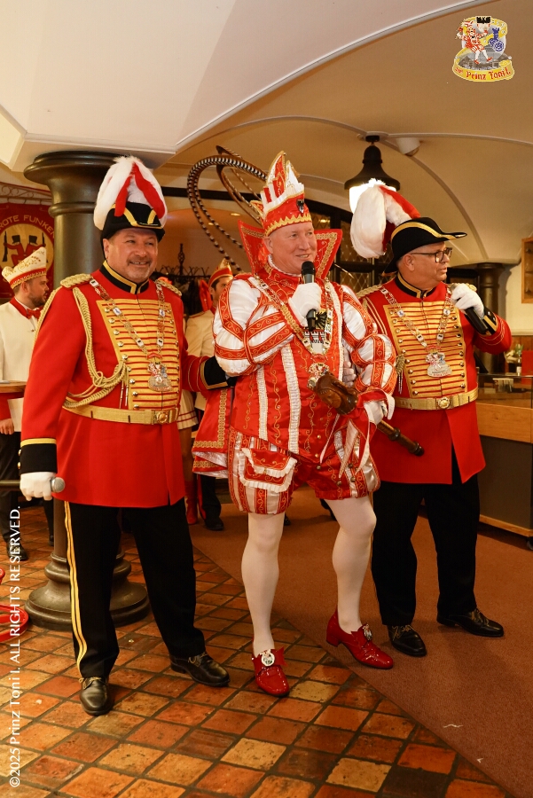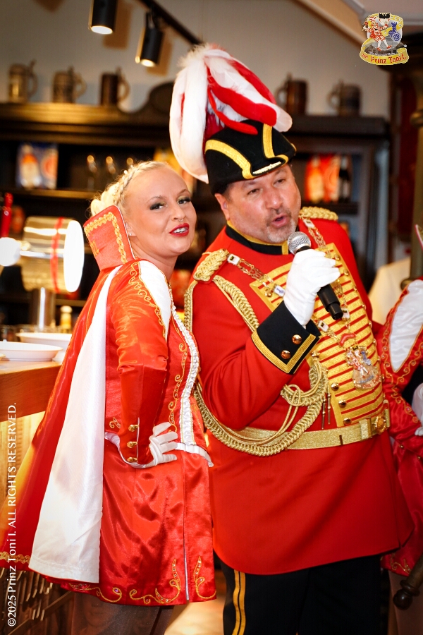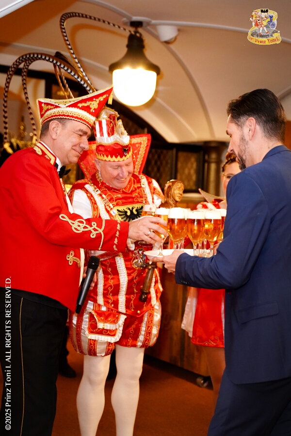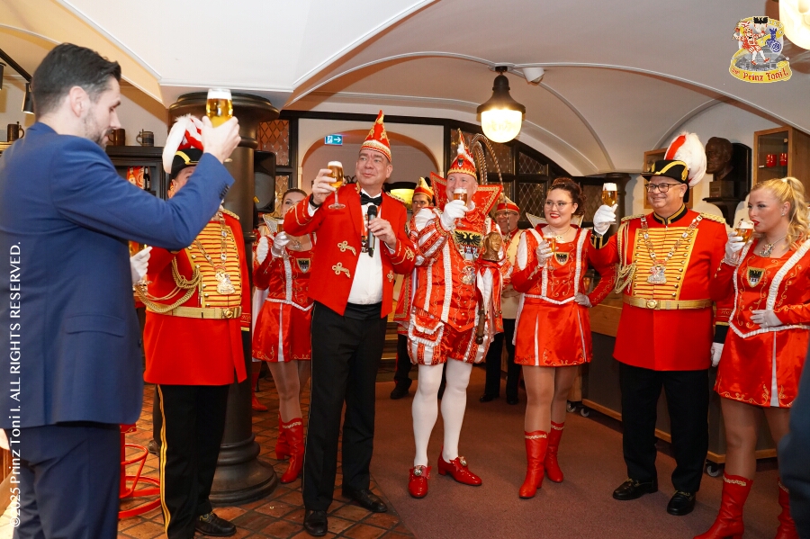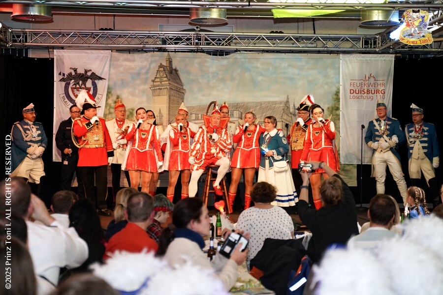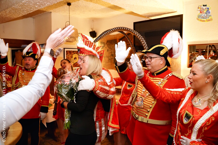 Unser Abend begann auf der 3. karnevalistische Gemeinschaftsveranstaltung des Innenstadtlöschzuges der Feuerwehr Duisburg und der Ehrengarde Blau-Weiß der Stadt Duisburg in der „Alten Feuerwache“. Danach waren wir Gäste beim Senatsabend der KG Rote Funken im „Theodor-König Keller“ auf dem Gelände der König-Pilsener Brauerei. Den Abend beendeten wir als Überraschungsgäste auf Kerstins 60. Geburtstag.