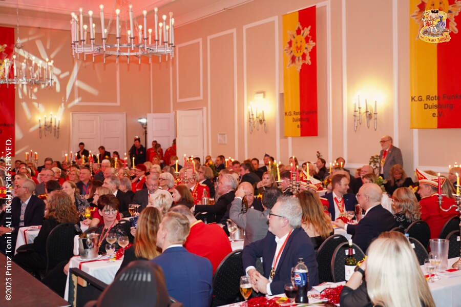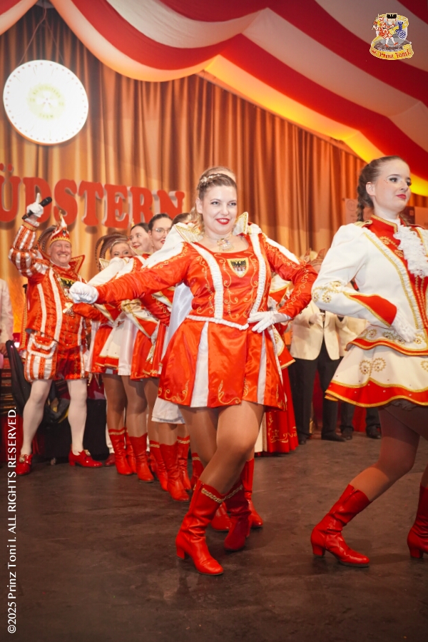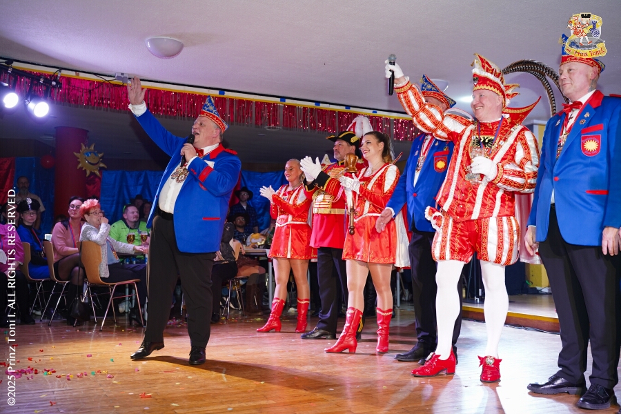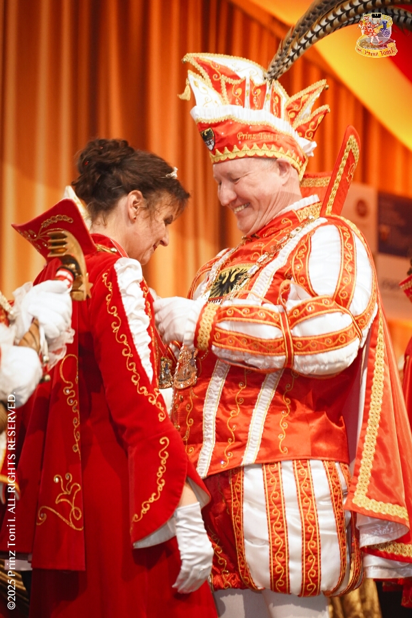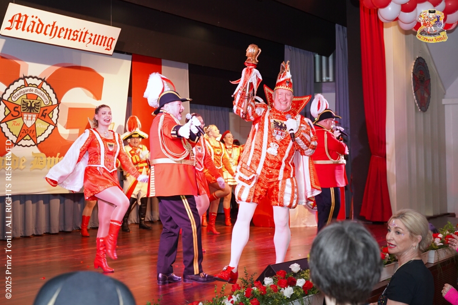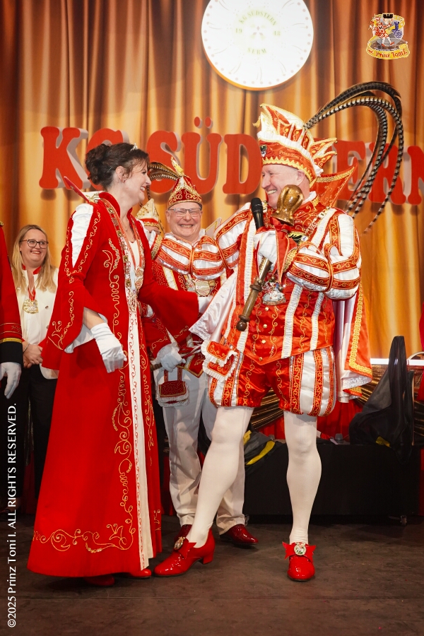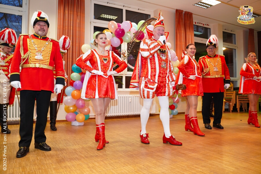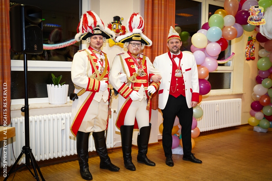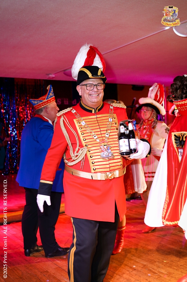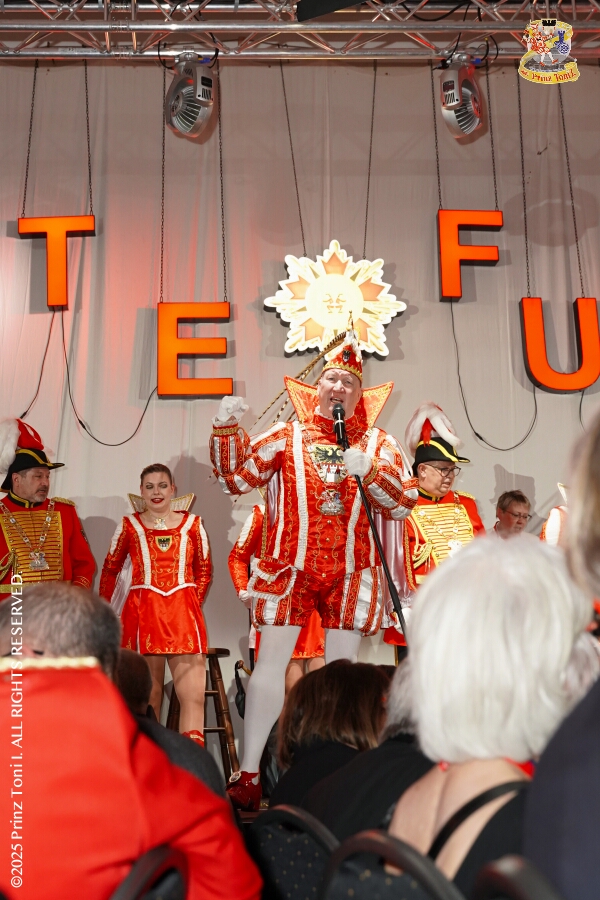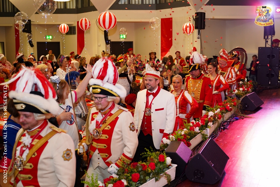 25 Tour-Tag, Samstag 24. Januar - Kurz vor 18 Uhr starten wir mit unserem Programm bei der Feier der AWO im Gemiendehaus Erlenstraße. Dann geht es zu Thomas Heimspiel, der „Kostümball“ der 1. KG Baerl im Waldhof. Als nächster Termin steht die „Damensitzung“ der KVO in der Clauberghalle auf dem Plan. Von dort geht es zurück in die City. Erst ins WYNDHAM Hotel Duisburger Hof zum „Funkenball“ der Roten Funken, nebenan dann im Landfermann Gymnasium „Damensitzung“ der Prinzengarde. Danach ins Gertrud-Bäumer-Berufskolleg zur „Mädchensitzung“ der Stadtgarde. Kurz über die A 59 nach Meiderich, hier ist die „Jeckenparty“ der Meidericher Jecken. Wieder Richtung Süden, mit Stop in der Falkstraße zur „Prunksitzung“ vom Sonnigen Süden, dann weiter nach Serm zur Prinzenkürung. Hatte auch etwas von Heimspiel für Pia und Toni.