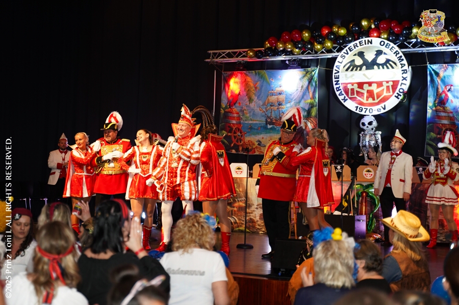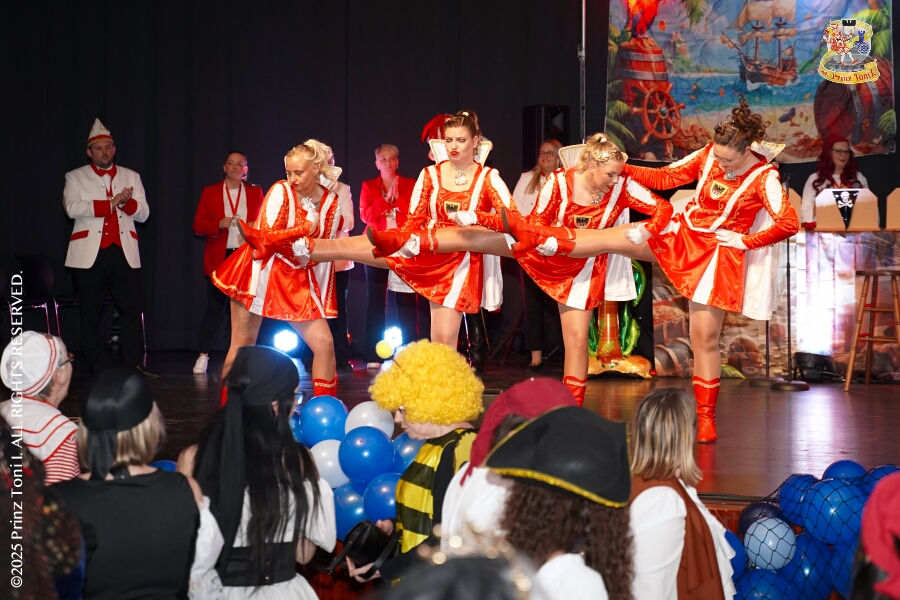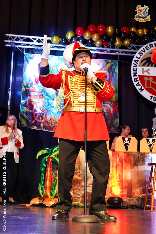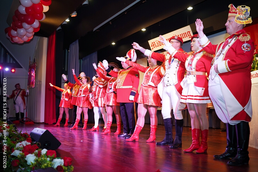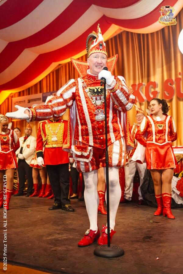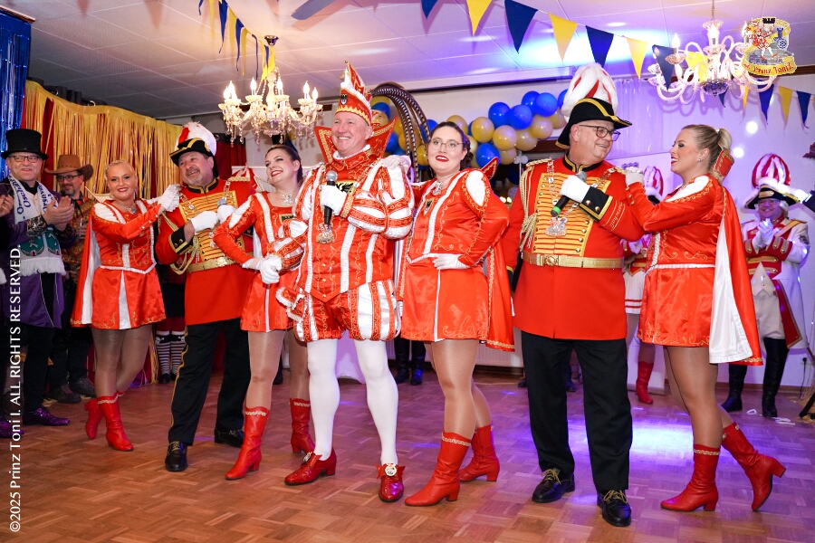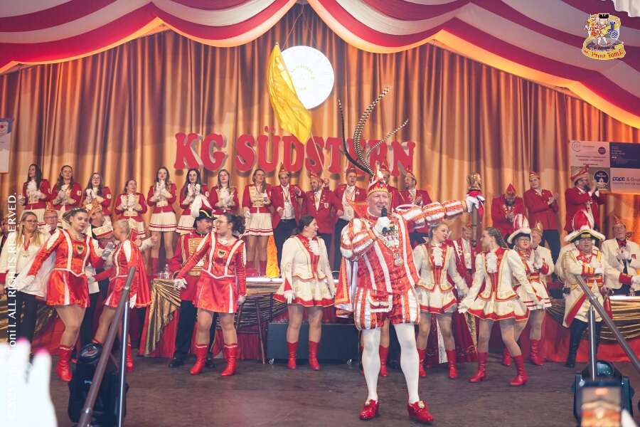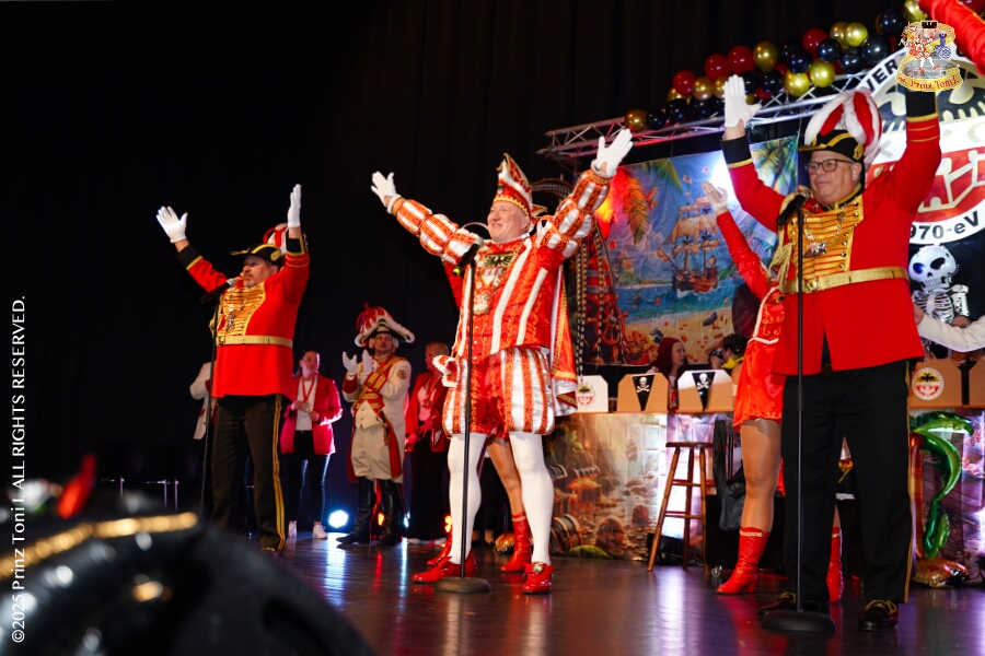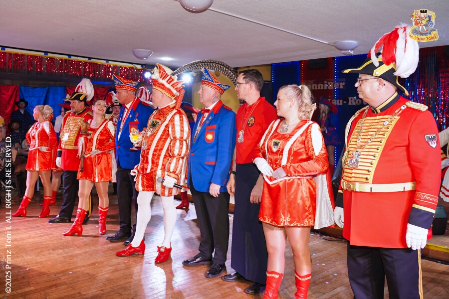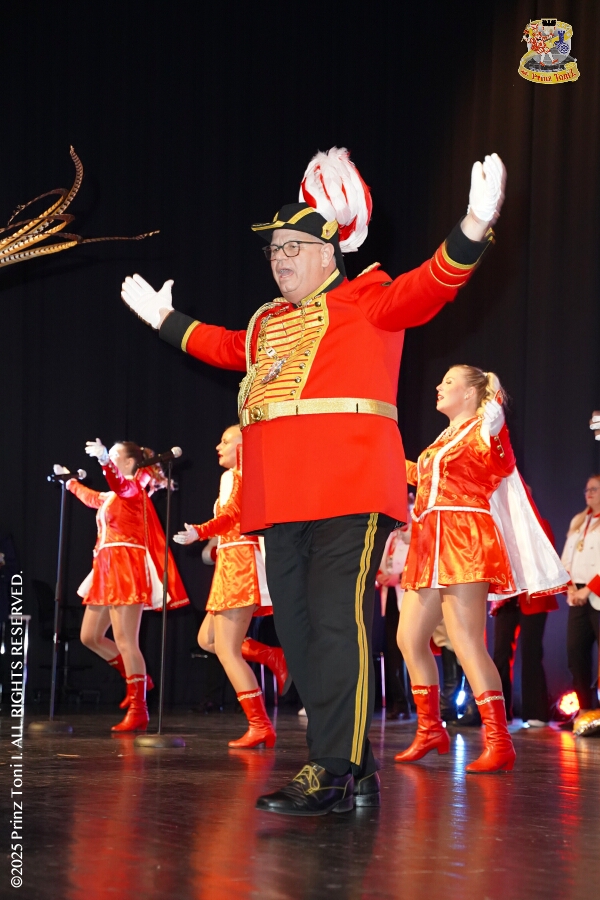 25 Tour-Tag, Samstag 24. Januar - Kurz vor 18 Uhr starten wir mit unserem Programm bei der Feier der AWO im Gemiendehaus Erlenstraße. Dann geht es zu Thomas Heimspiel, der „Kostümball“ der 1. KG Baerl im Waldhof. Als nächster Termin steht die „Damensitzung“ der KVO in der Clauberghalle auf dem Plan. Von dort geht es zurück in die City. Erst ins WYNDHAM Hotel Duisburger Hof zum „Funkenball“ der Roten Funken, nebenan dann im Landfermann Gymnasium „Damensitzung“ der Prinzengarde. Danach ins Gertrud-Bäumer-Berufskolleg zur „Mädchensitzung“ der Stadtgarde. Kurz über die A 59 nach Meiderich, hier ist die „Jeckenparty“ der Meidericher Jecken. Wieder Richtung Süden, mit Stop in der Falkstraße zur „Prunksitzung“ vom Sonnigen Süden, dann weiter nach Serm zur Prinzenkürung. Hatte auch etwas von Heimspiel für Pia und Toni.