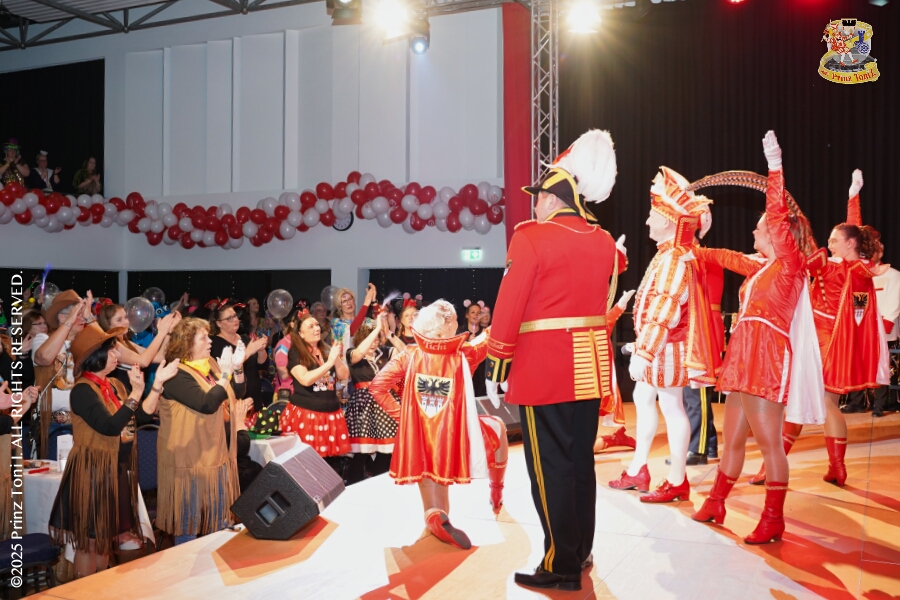 9 Tour-Tag, Samstag 24. Januar - Kurz vor 18 Uhr starten wir mit unserem Programm bei der Feier der AWO im Gemiendehaus Erlenstraße. Dann geht es zu Thomas Heimspiel, der „Kostümball“ der 1. KG Baerl im Waldhof. Als nächster Termin steht die „Damensitzung“ der KVO in der Clauberghalle auf dem Plan. Von dort geht es zurück in die City. Erst ins WYNDHAM Hotel Duisburger Hof zum „Funkenball“ der Roten Funken, nebenan dann im Landfermann Gymnasium „Damensitzung“ der Prinzengarde. Danach ins Gertrud-Bäumer-Berufskolleg zur „Mädchensitzung“ der Stadtgarde. Kurz über die A 59 nach Meiderich, hier ist die „Jeckenparty“ der Meidericher Jecken. Wieder Richtung Süden, mit Stop in der Falkstraße zur „Prunksitzung“ vom Sonnigen Süden, dann weiter nach Serm zur Prinzenkürung. Hatte auch etwas von Heimspiel für Pia und Toni.