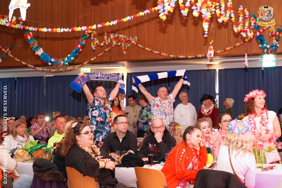 22 Tour-Tag, Samstag 24. Januar - Kurz vor 18 Uhr starten wir mit unserem Programm bei der Feier der AWO im Gemiendehaus Erlenstraße. Dann geht es zu Thomas Heimspiel, der „Kostümball“ der 1. KG Baerl im Waldhof. Als nächster Termin steht die „Damensitzung“ der KVO in der Clauberghalle auf dem Plan. Von dort geht es zurück in die City. Erst ins WYNDHAM Hotel Duisburger Hof zum „Funkenball“ der Roten Funken, nebenan dann im Landfermann Gymnasium „Damensitzung“ der Prinzengarde. Danach ins Gertrud-Bäumer-Berufskolleg zur „Mädchensitzung“ der Stadtgarde. Kurz über die A 59 nach Meiderich, hier ist die „Jeckenparty“ der Meidericher Jecken. Wieder Richtung Süden, mit Stop in der Falkstraße zur „Prunksitzung“ vom Sonnigen Süden, dann weiter nach Serm zur Prinzenkürung. Hatte auch etwas von Heimspiel für Pia und Toni.